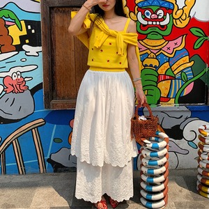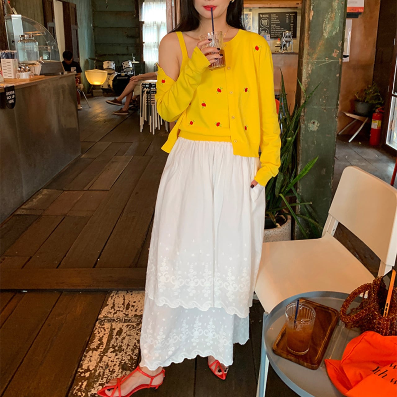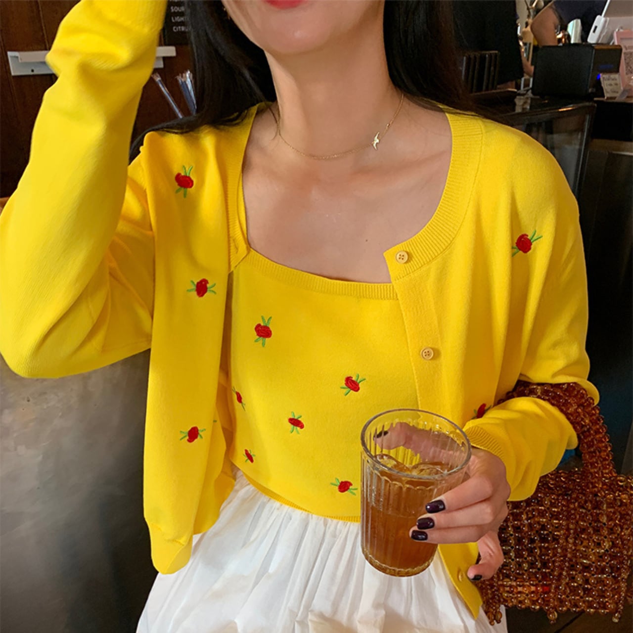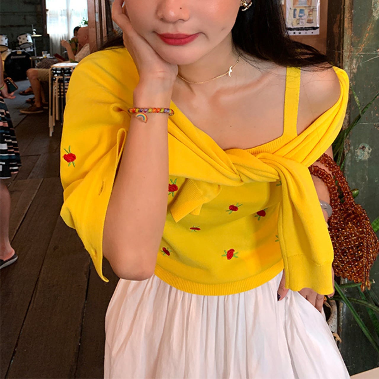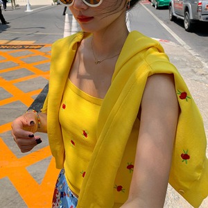 ビタミンイエローに、小さなバラ刺繍を散りばめたキャミソール。