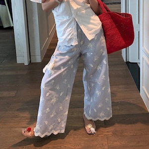 Striped embroidered wide pants 00340