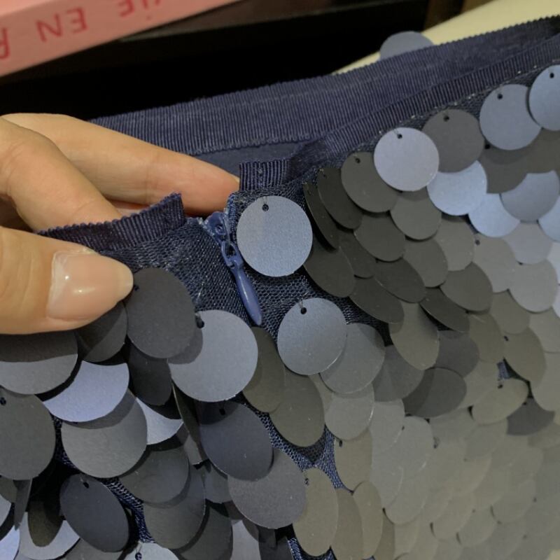 たっぷりのスパンコールがきらめくタイトシルエットのミニスカート。