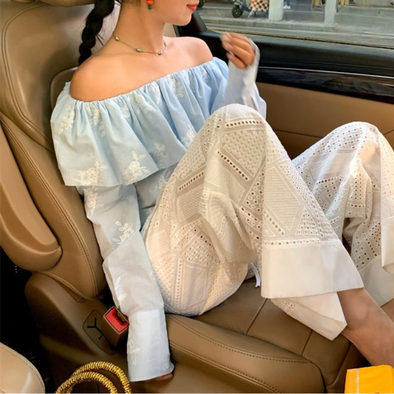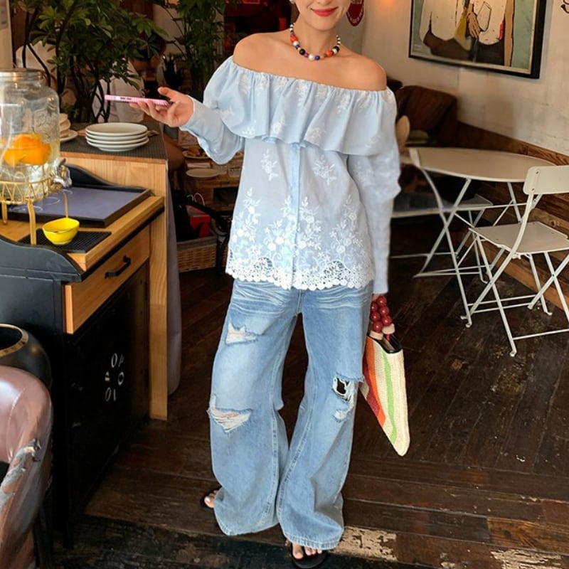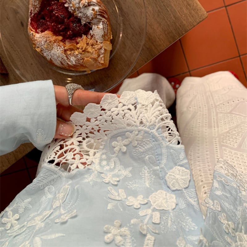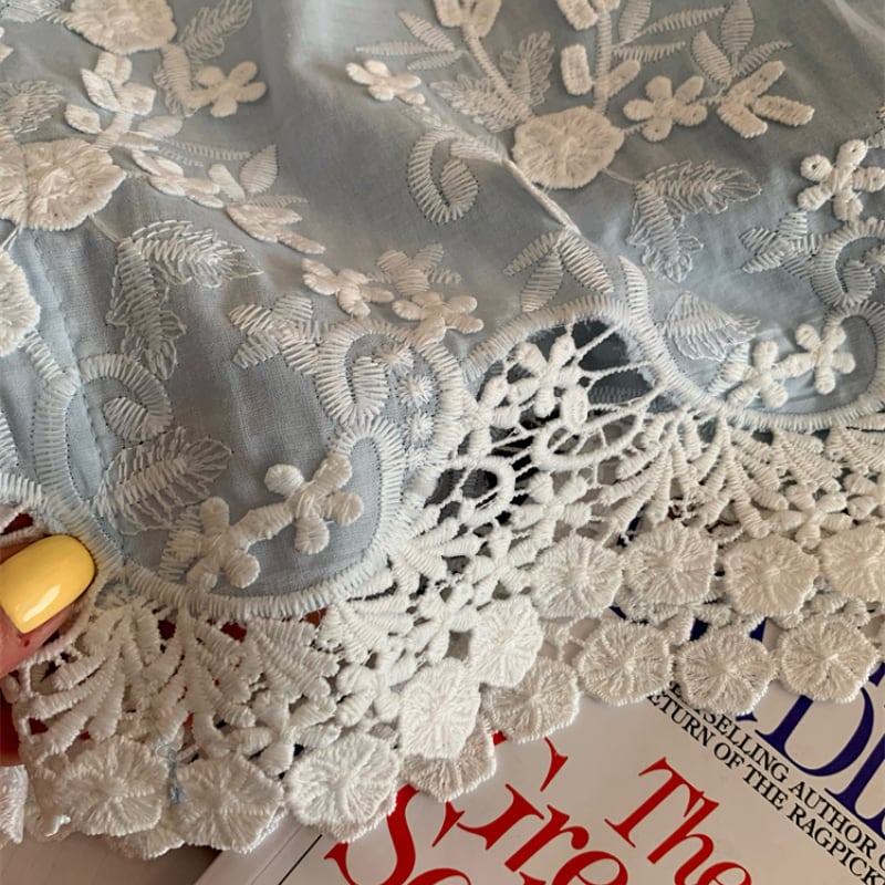 レースと刺繍のディテールが映え、どんなボトムスとも好相性♪