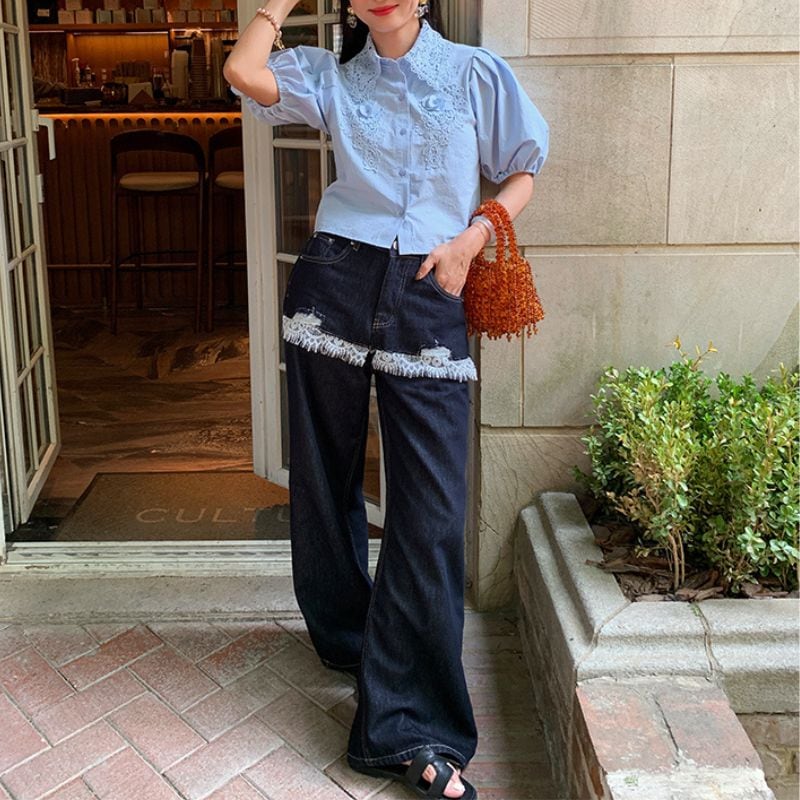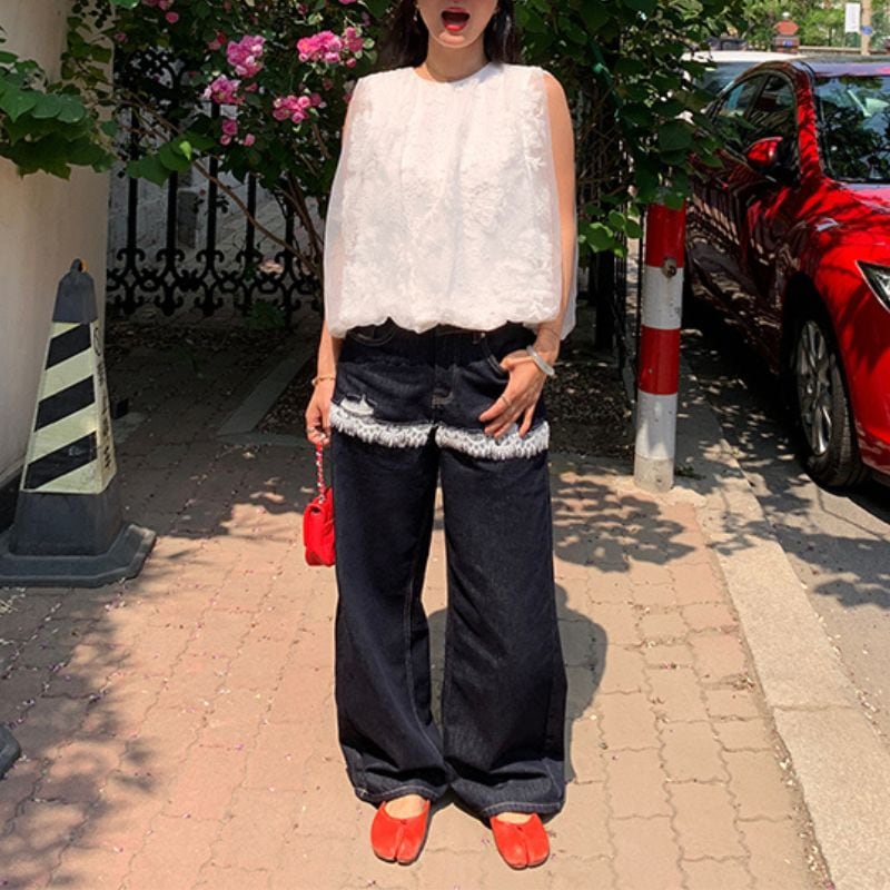視線を集めるレース×クラッシュ加工でデザイン性も抜群。