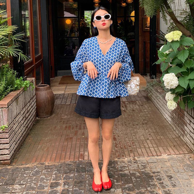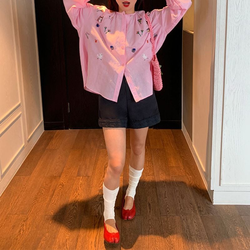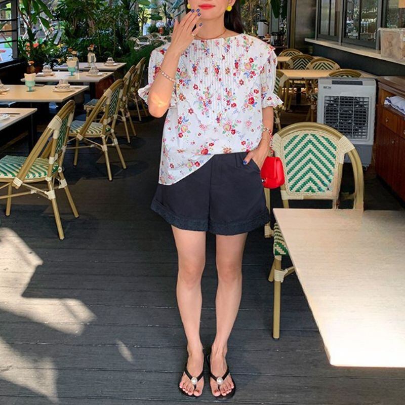 裾のロールアップと刺繍レースが目を惹くショートパンツ。