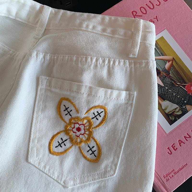 バックポケットの刺繍が目を惹くホワイトデニムパンツ。