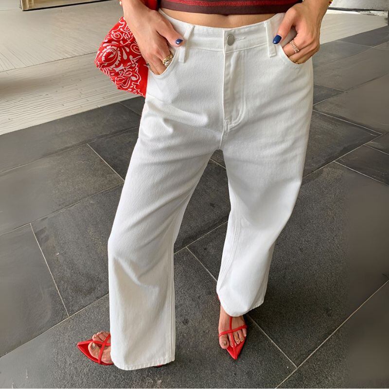 ハイウエスト&ストレートシルエットで脚長効果も◎
