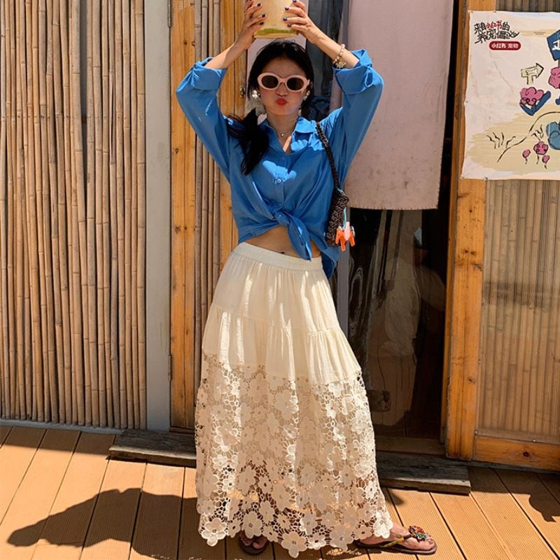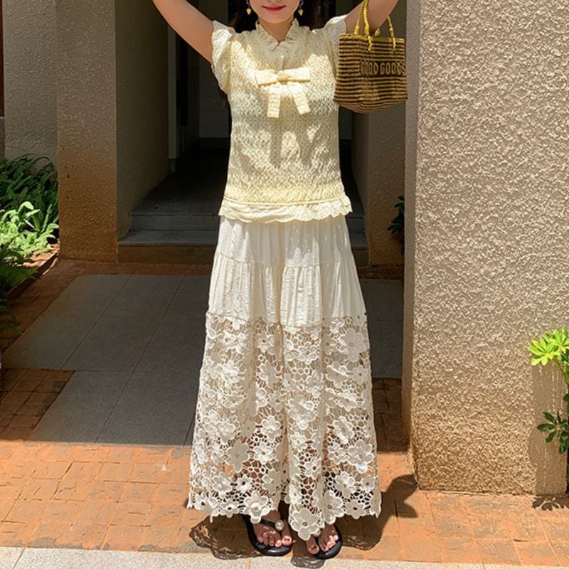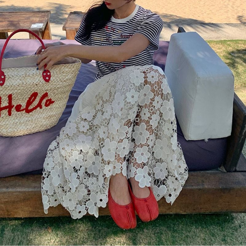 歩くたびに揺れる裾がフェミニンな印象を演出します♪