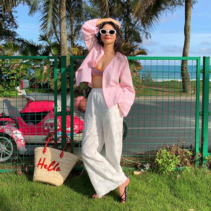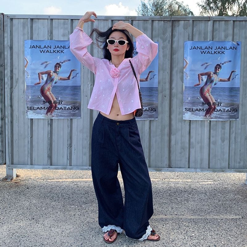 デニムやスカートと合わせて甘すぎない着こなしもおすすめ。