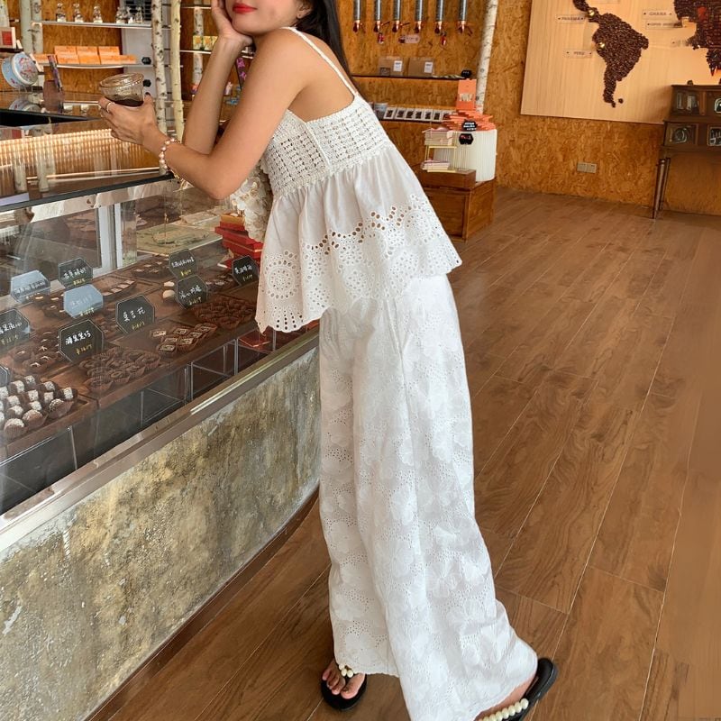 Eyelet embroidered floral wide pants 00434