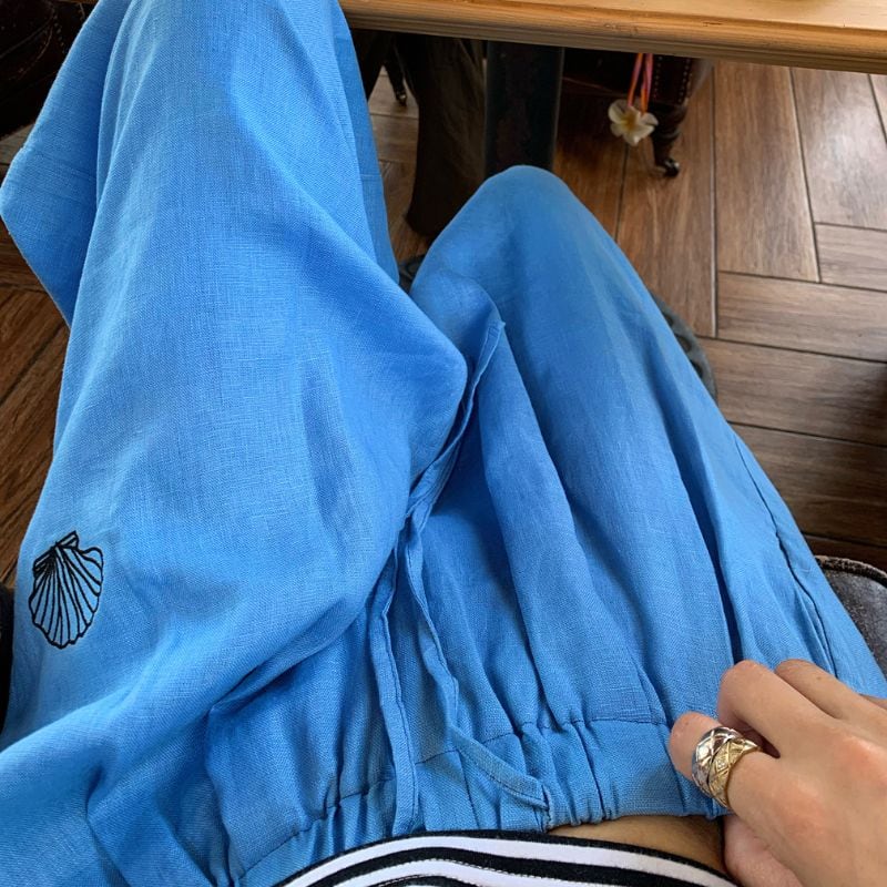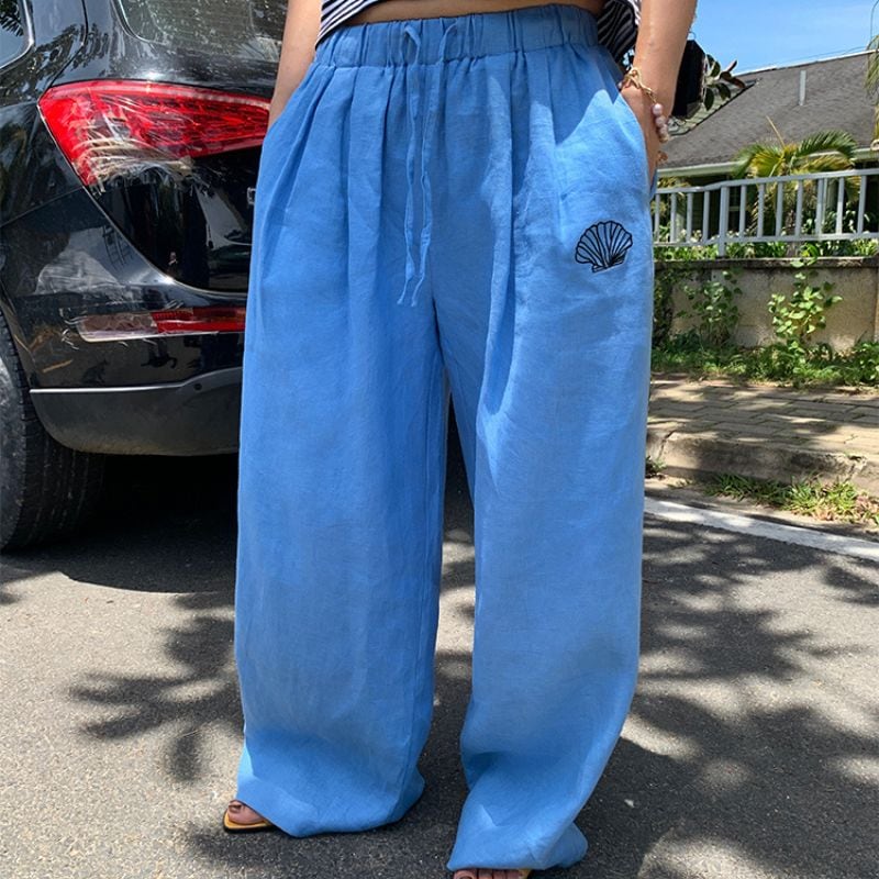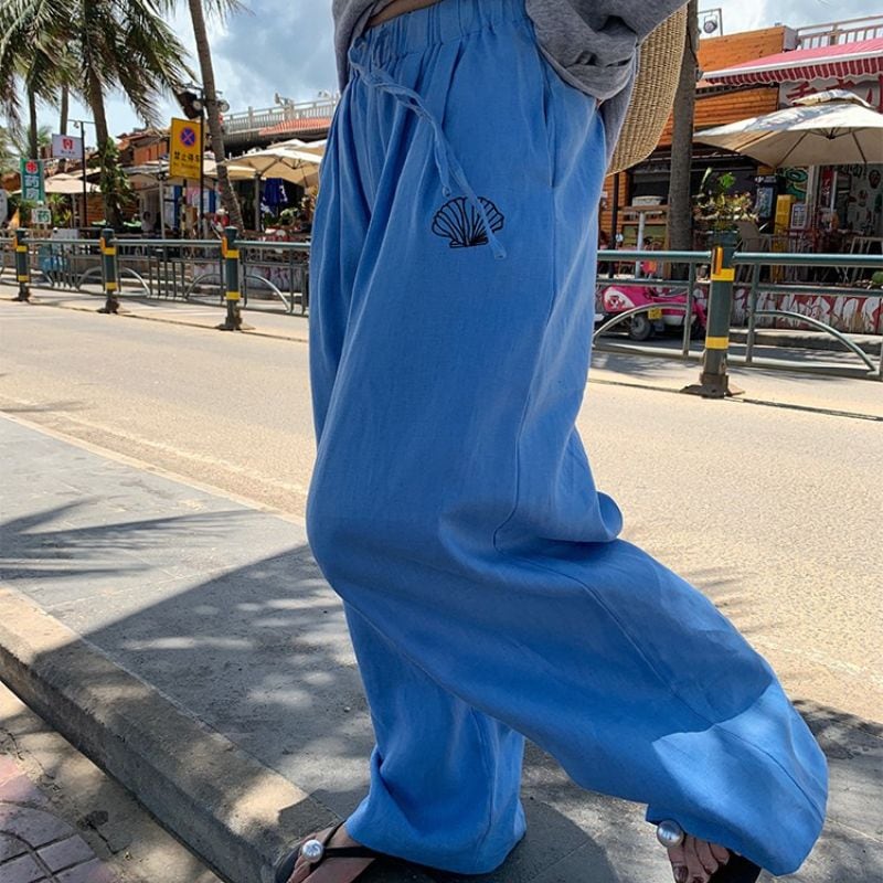 Shell detail drawstring wide pants 00435