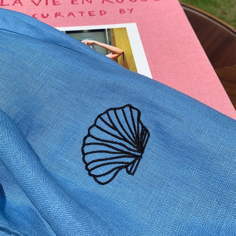 貝殻モチーフの刺繍がさりげないアクセントに。