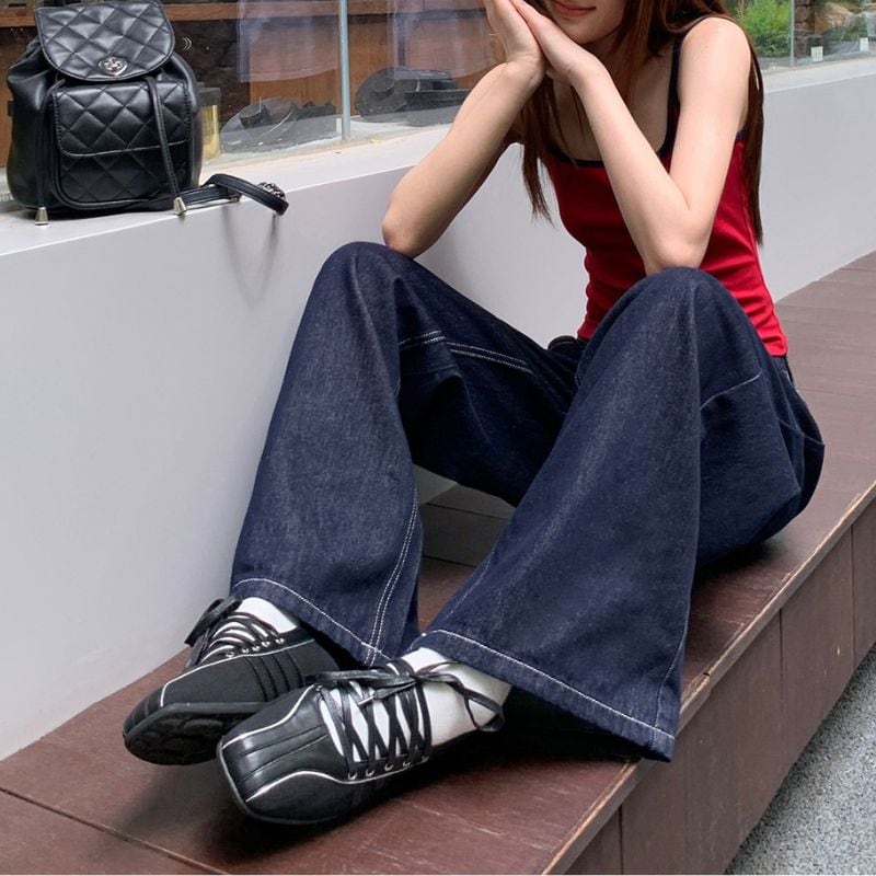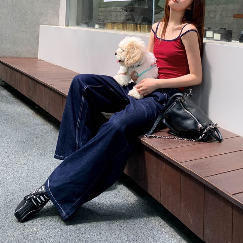 ワイドなストレートは、カジュアルながらこなれ感のあるスタイルに◎