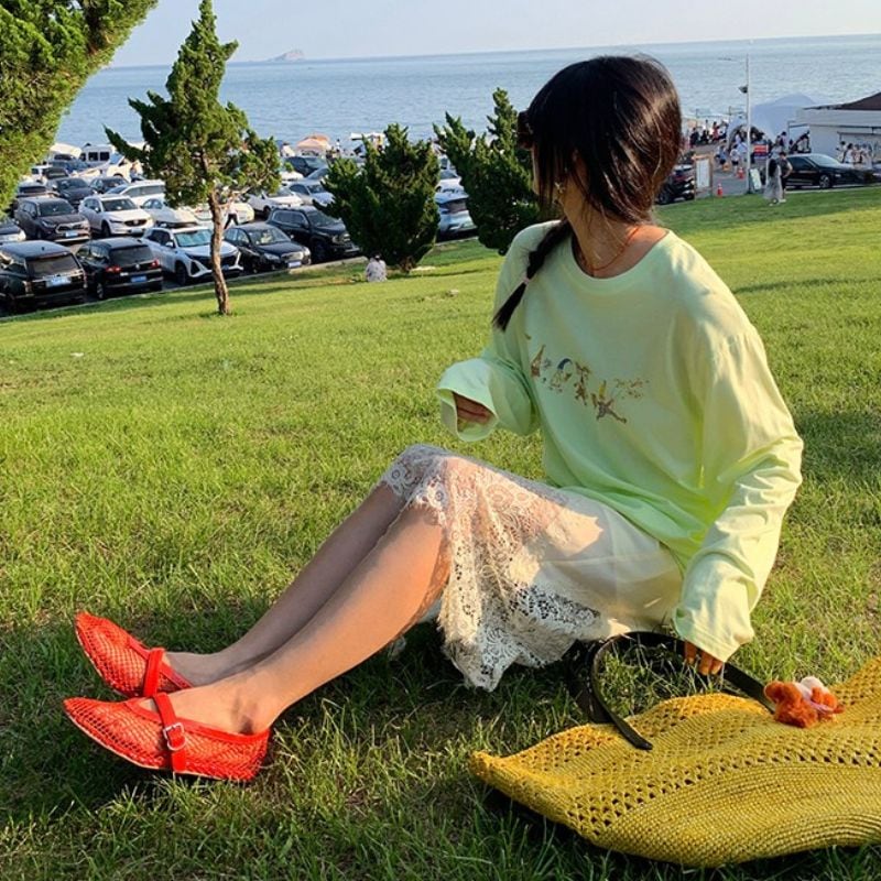 胸元の可愛らしいイラストプリントがコーデのアクセントに◎