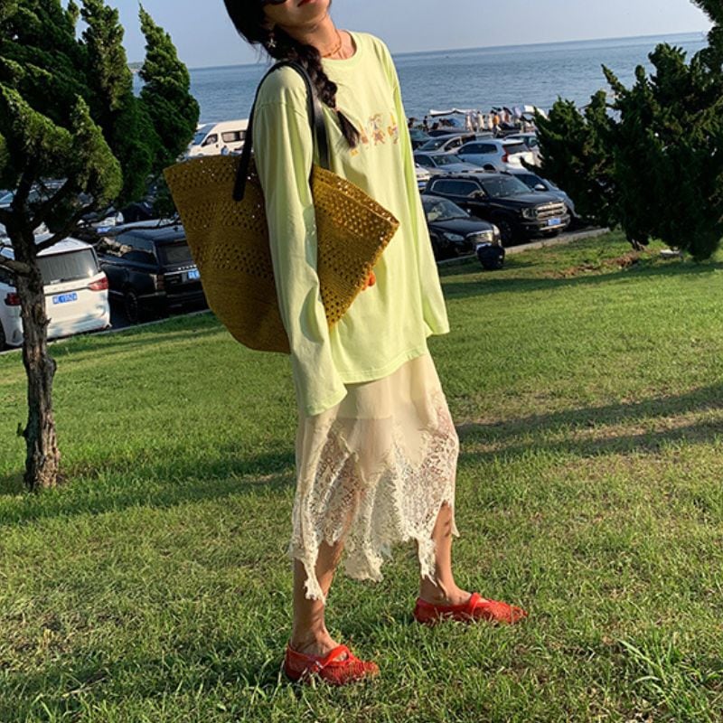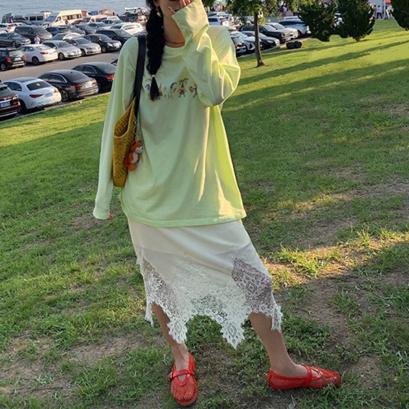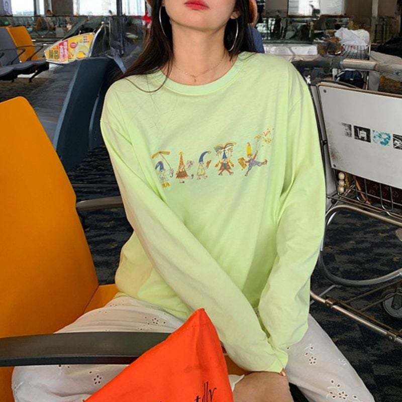 鮮やかなライトグリーンが映えるロングスリーブTシャツ。
