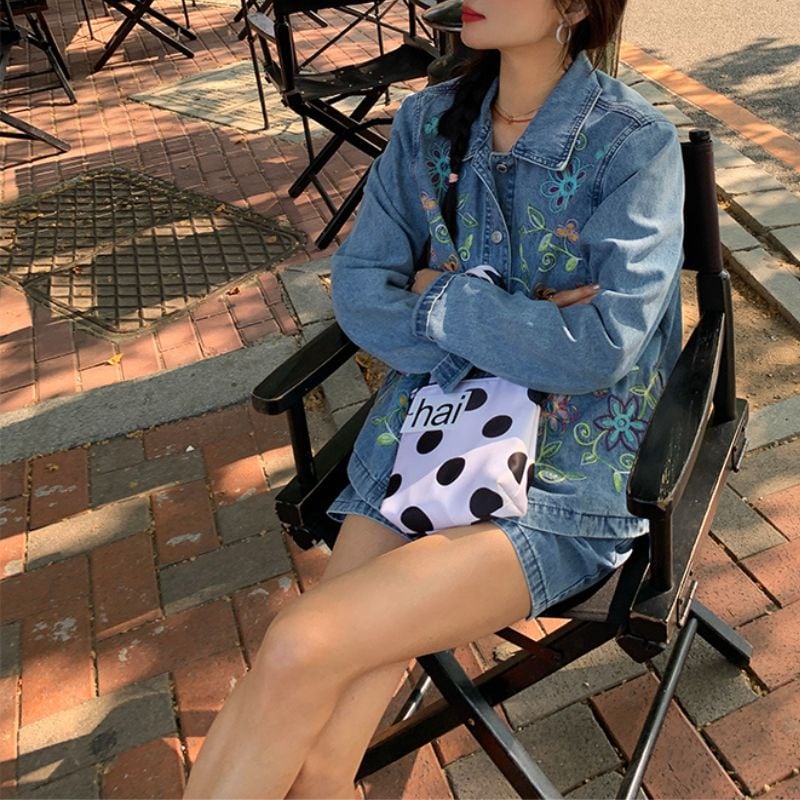 同素材のジャケットと合わせれば、統一感のあるスタイルに♪