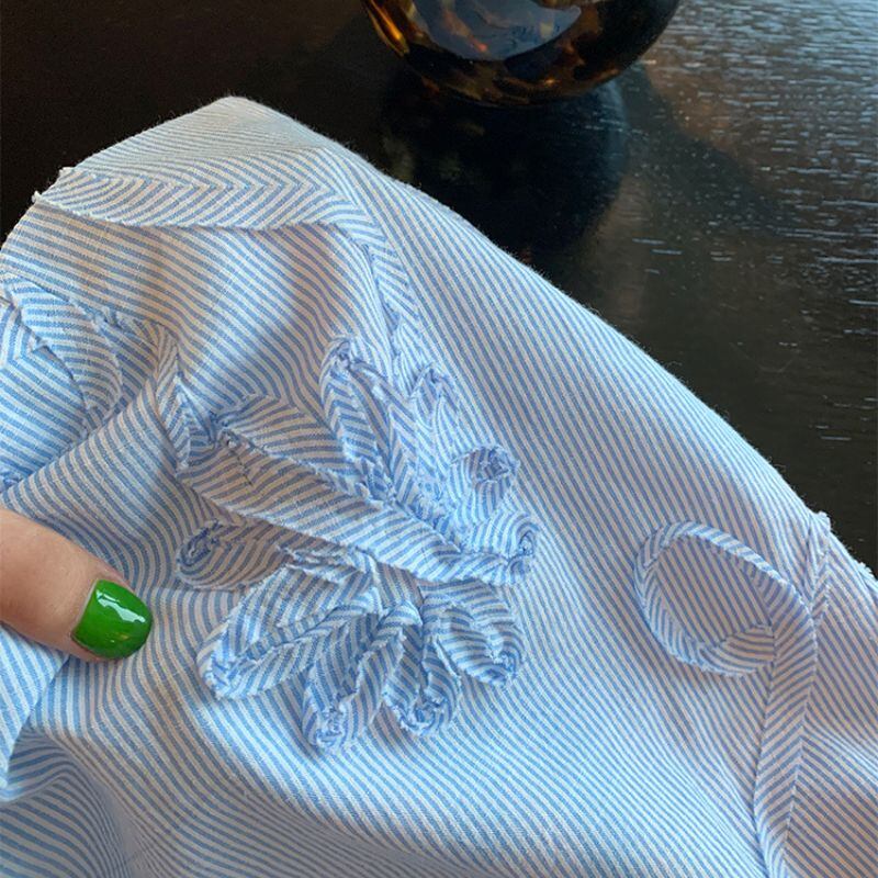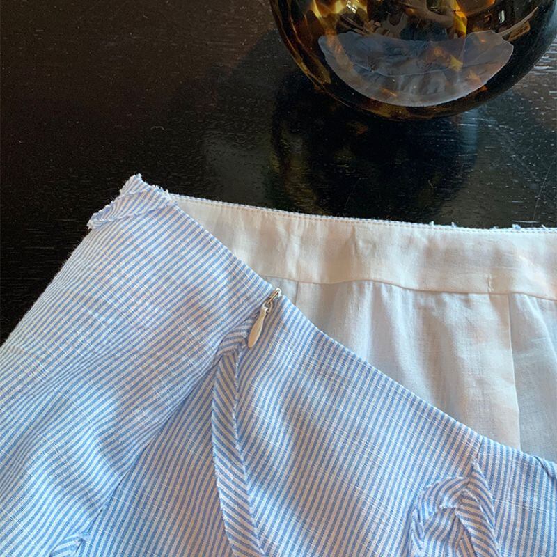 爽やかなストライプ柄との組み合わせが、洗練された印象に◎