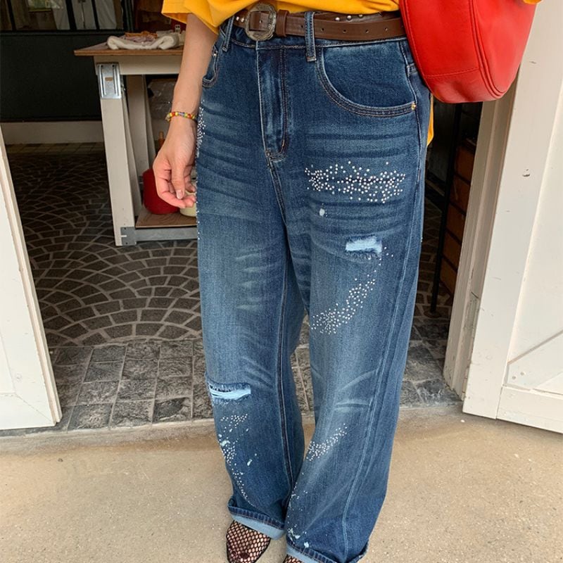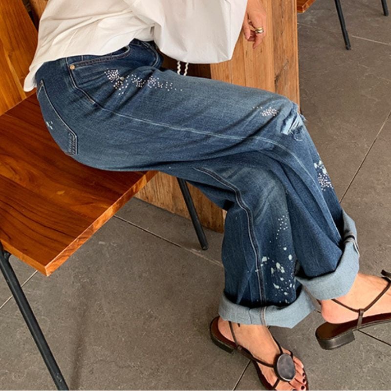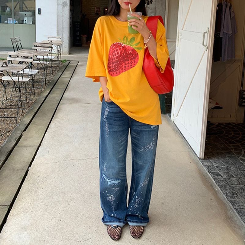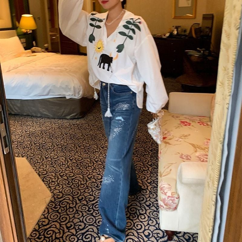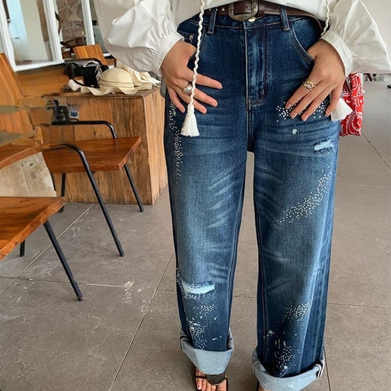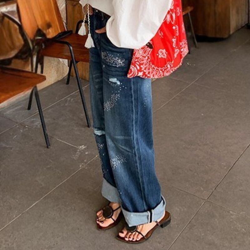 シンプルなトップスと合わせるだけで華やかになる1本です。