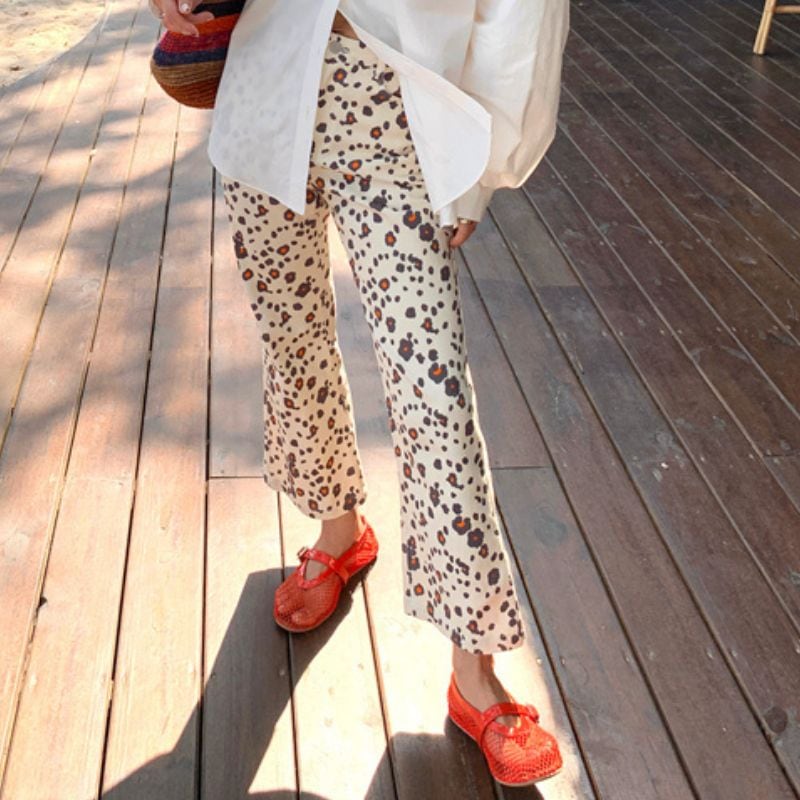 着るだけで気分が上がるレオパード柄の個性派パンツ。