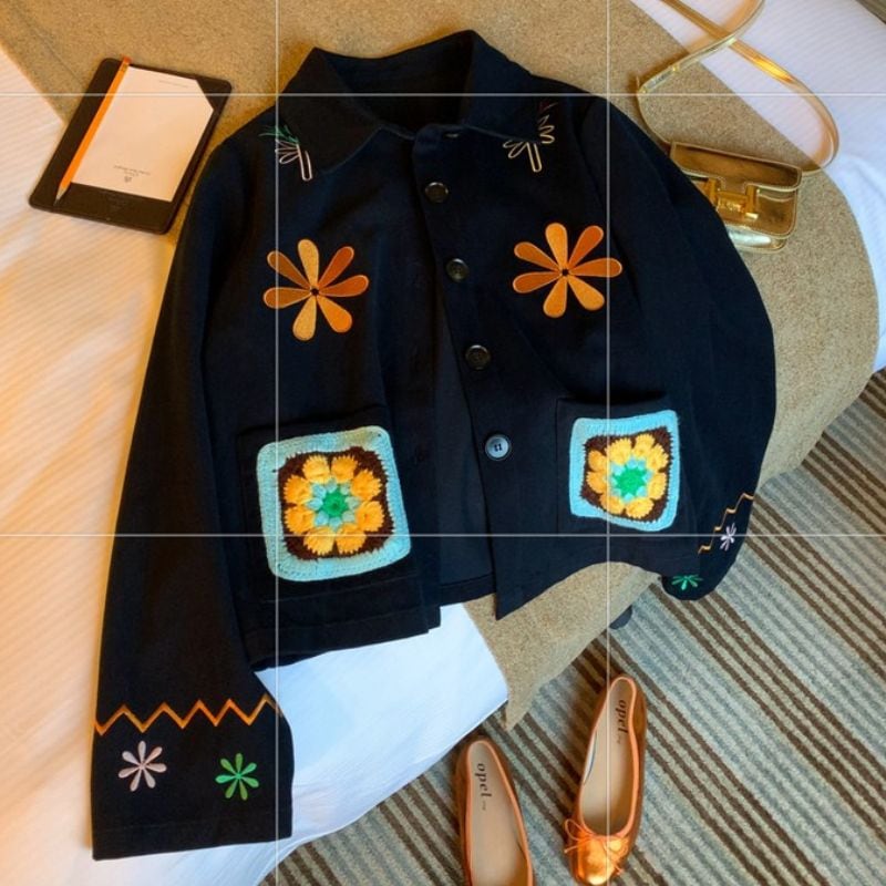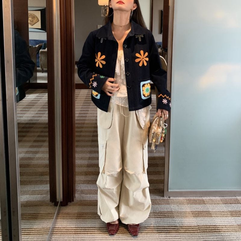 カラフルなフラワーモチーフ刺繍が目を惹くショート丈ジャケット。