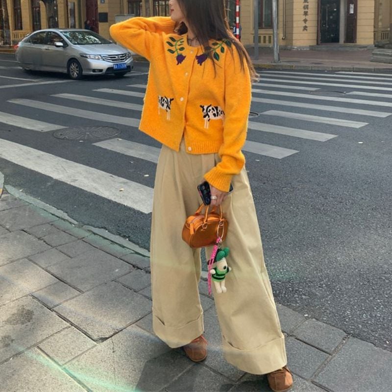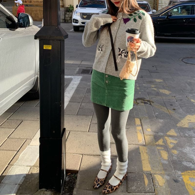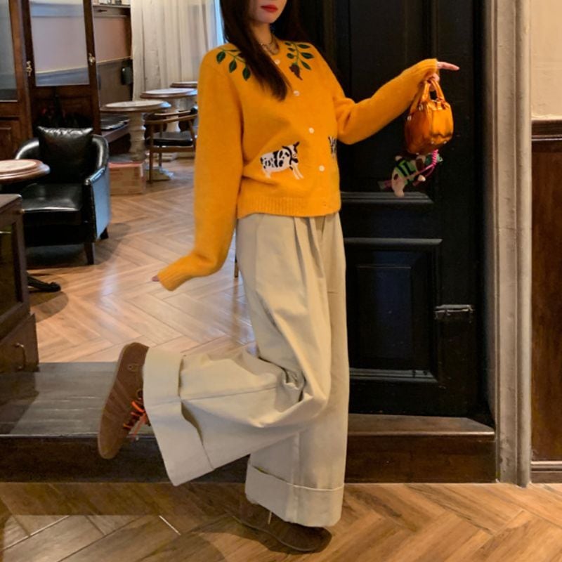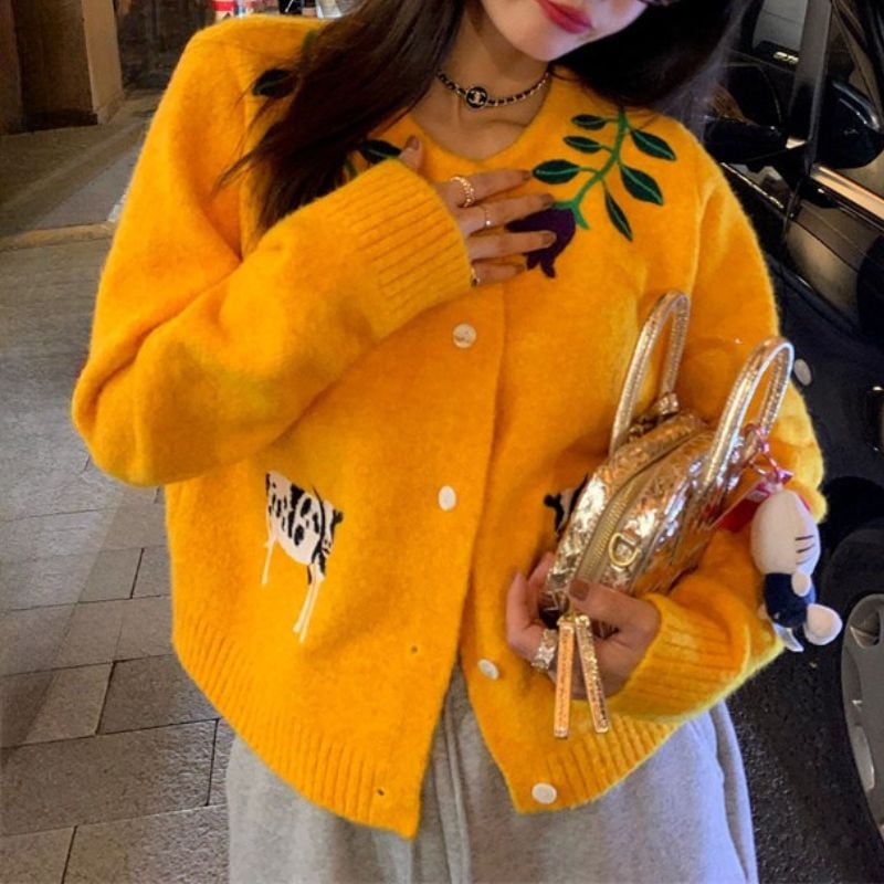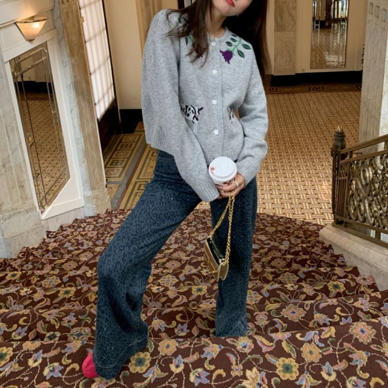 遊び心のある刺繍がポイントのクロップドカーディガン。