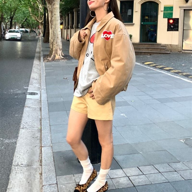 胸元のアップリケがアクセントになるオーバーサイズジャケット。