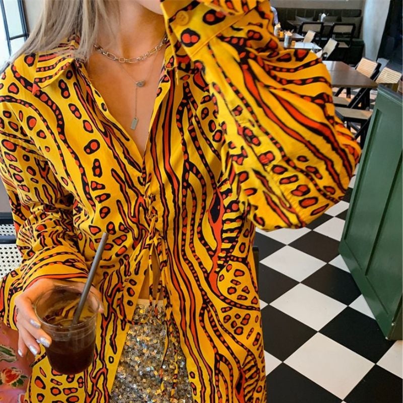 フロントは同柄のリボンで結ぶ仕様で女性らしい印象に◎