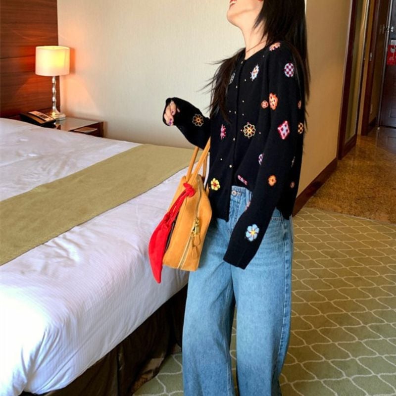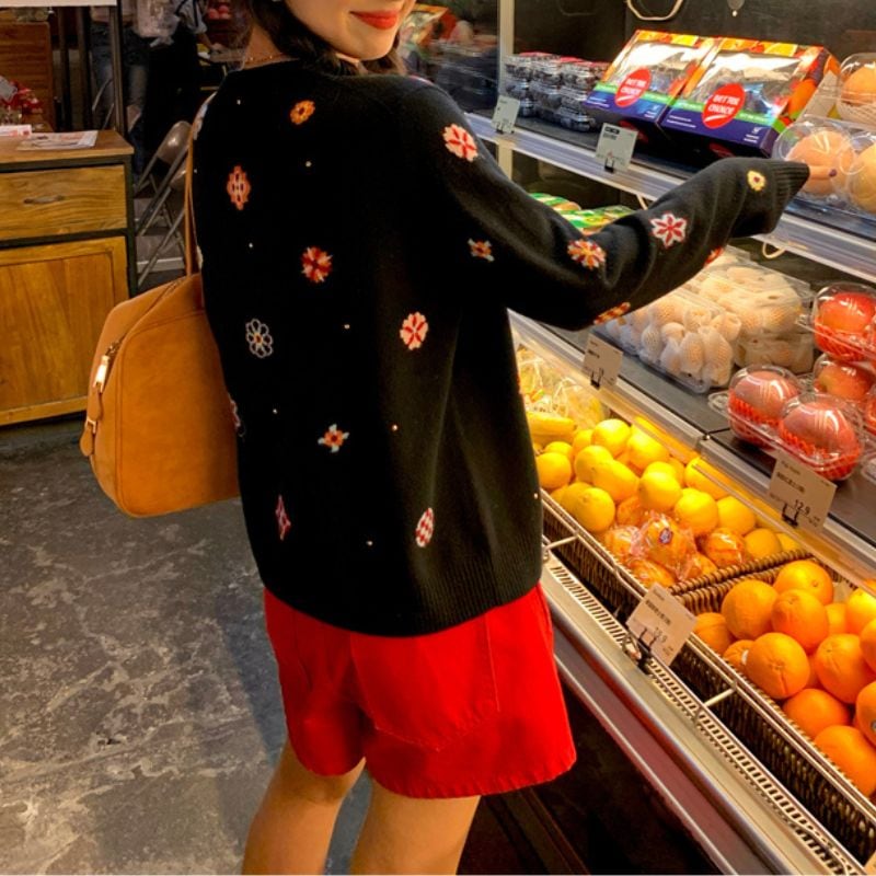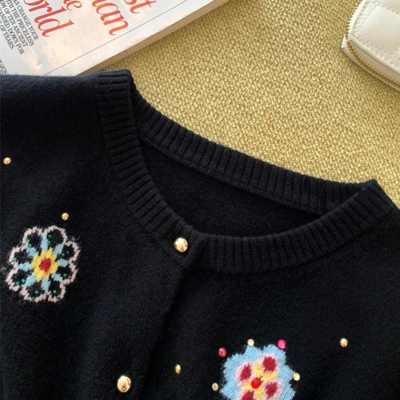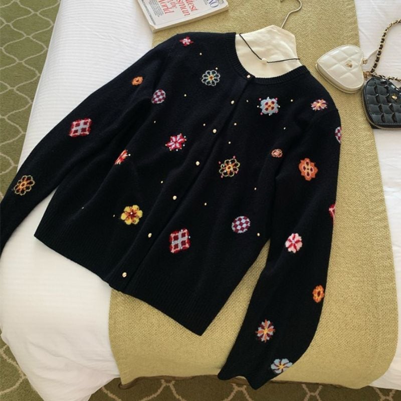 色とりどりの刺繍が目を惹くニットカーディガン。