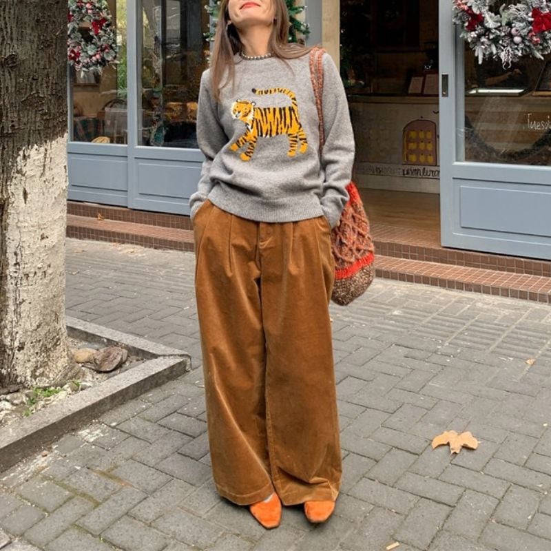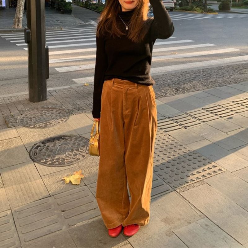 秋冬のコーデにぴったりなコーデュロイのワイドパンツ。