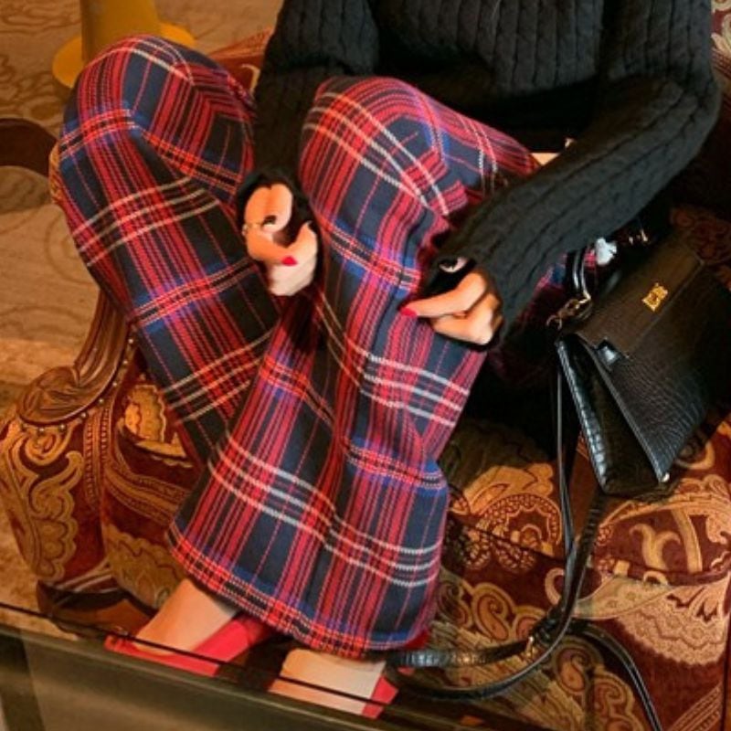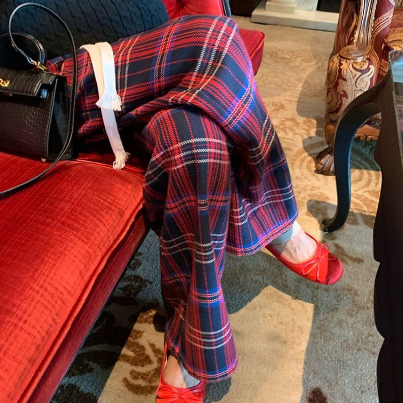 暖かみのあるチェック柄が魅力的なストレートパンツ。