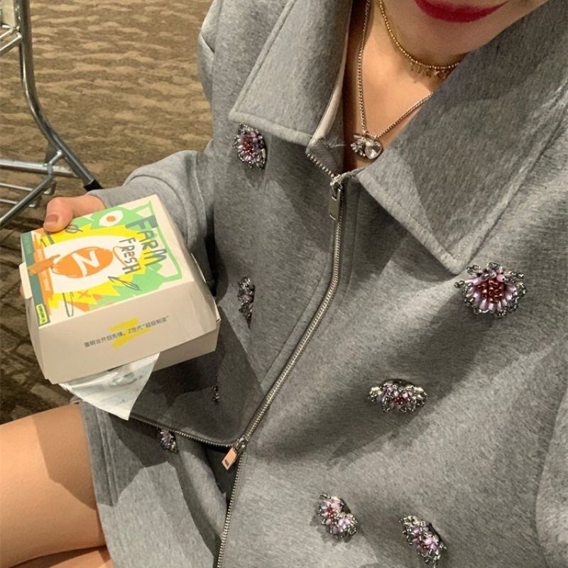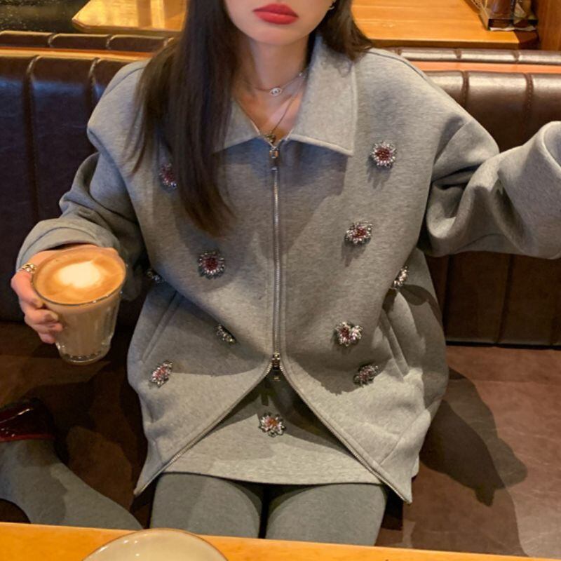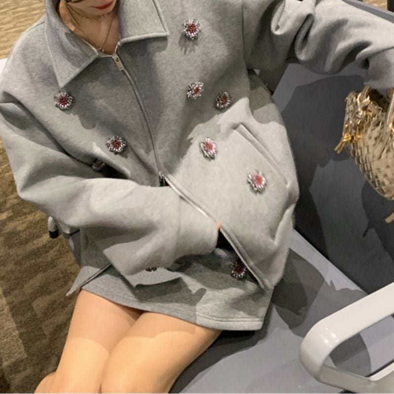【SET UP可】Embellished sweatshirt zip up jacket 00504