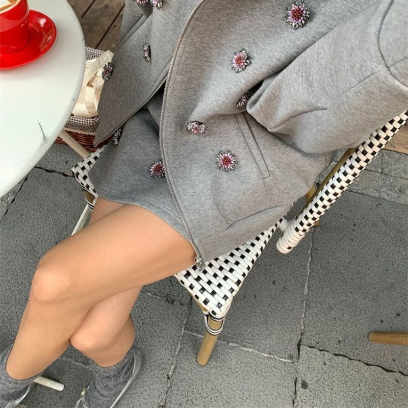 【SET UP可】Embellished sweatshirt mini skirt 00505