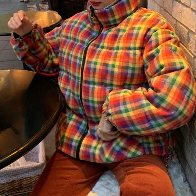 リバーシブルで楽しめるデザインのダウンジャケット。