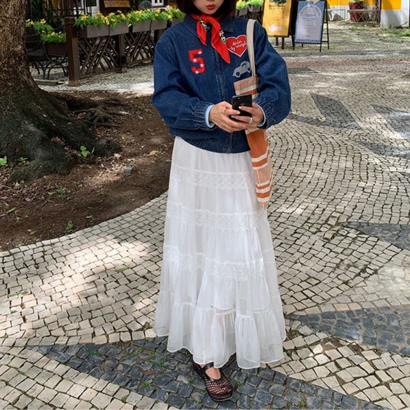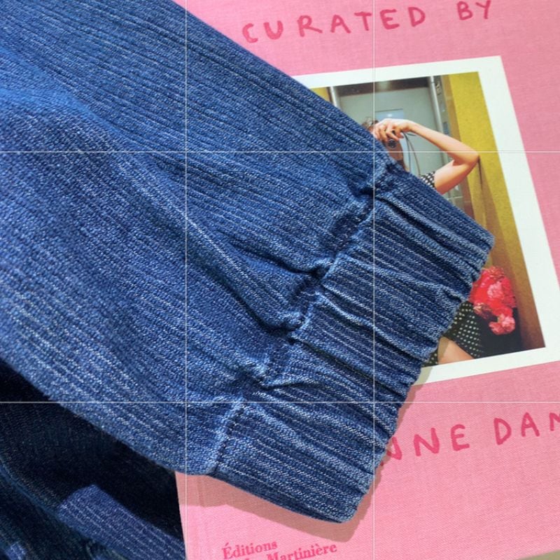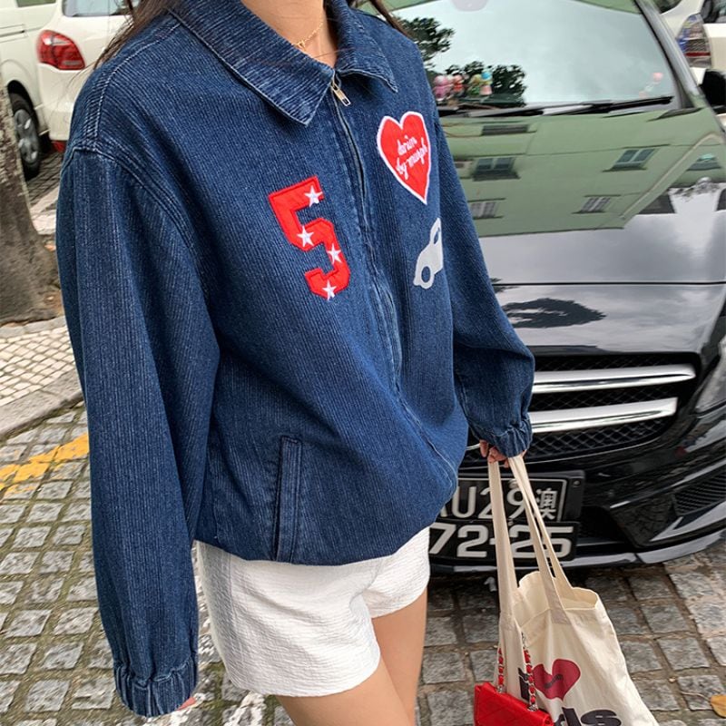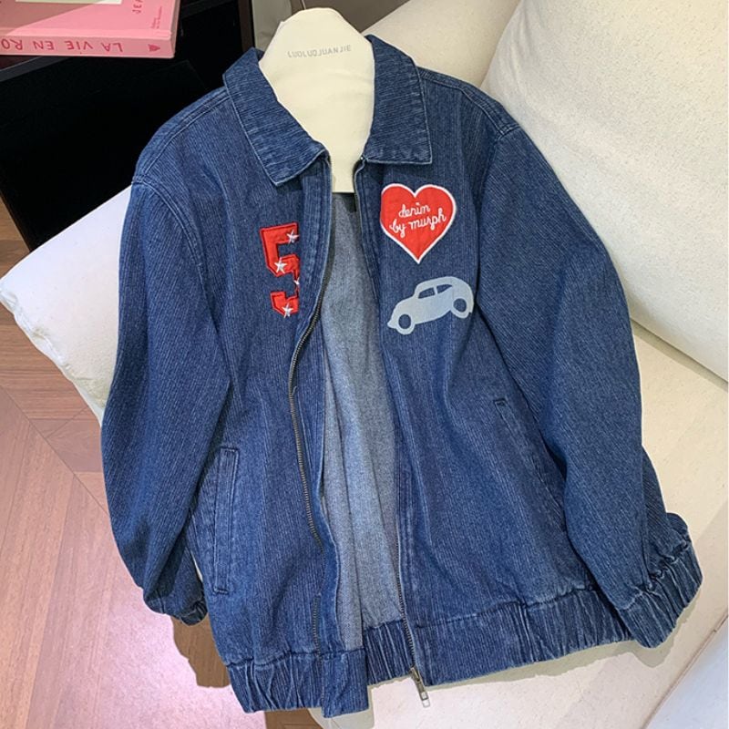 胸元のアップリケモチーフが印象的なデニムジャケット。