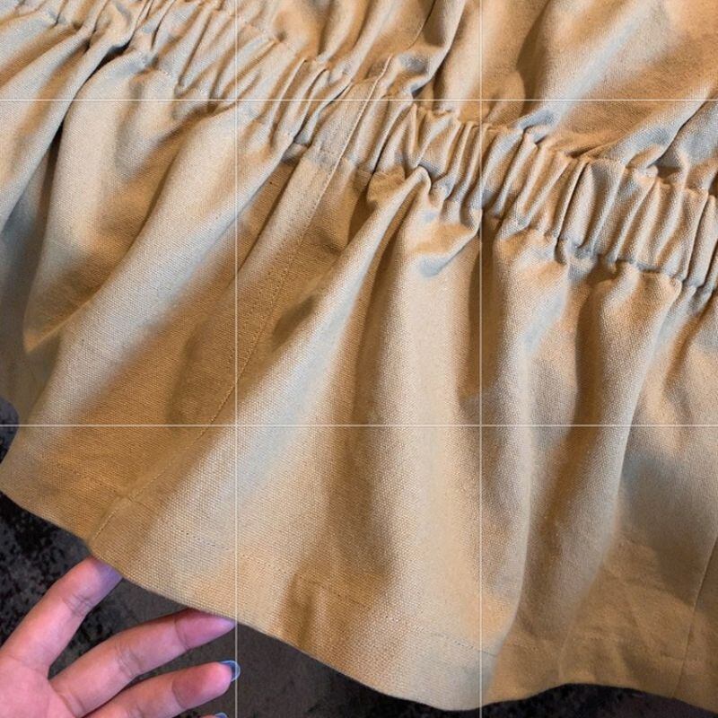 ウエストにはギャザーを施し、シルエットにメリハリをプラス◎