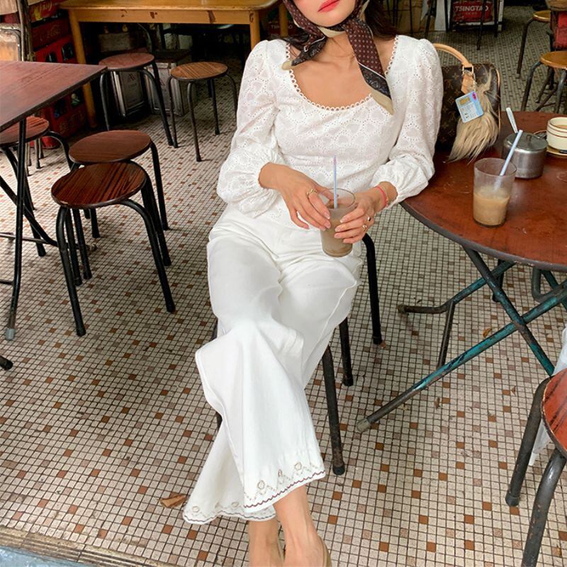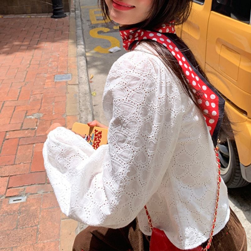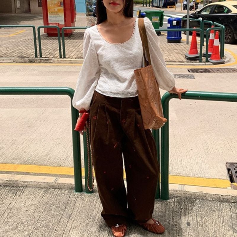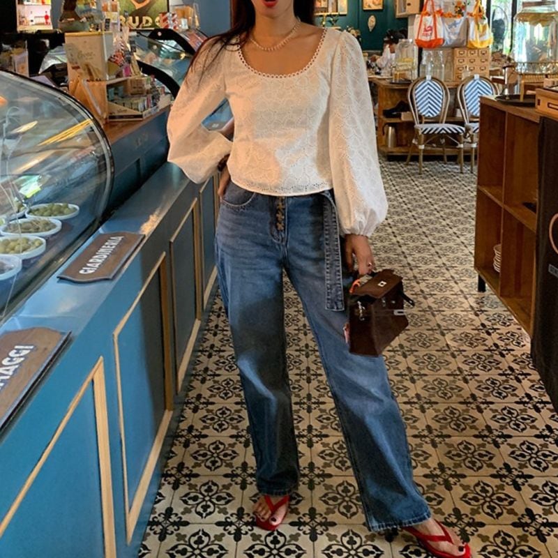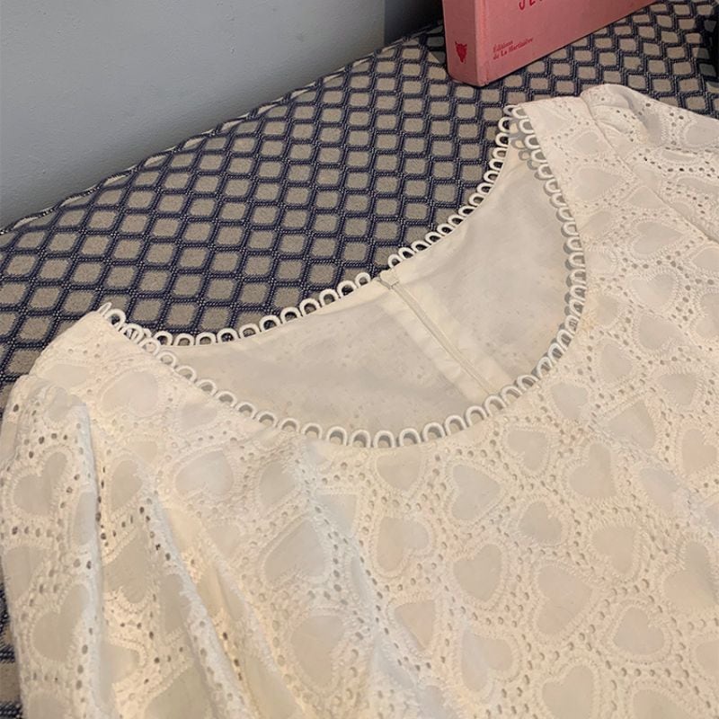 ふんわりとしたパフスリーブが女性らしさを引き立てます。