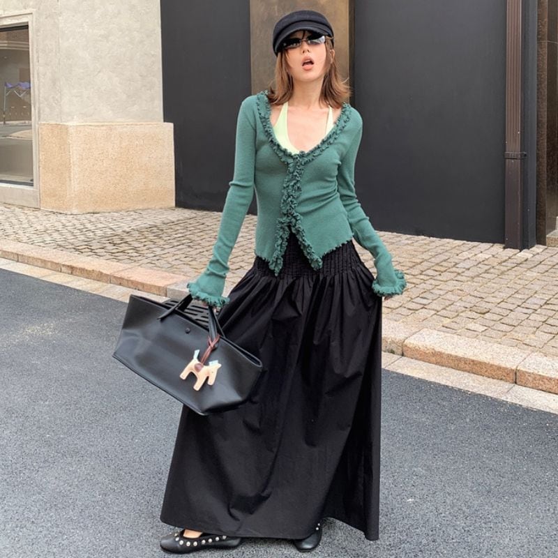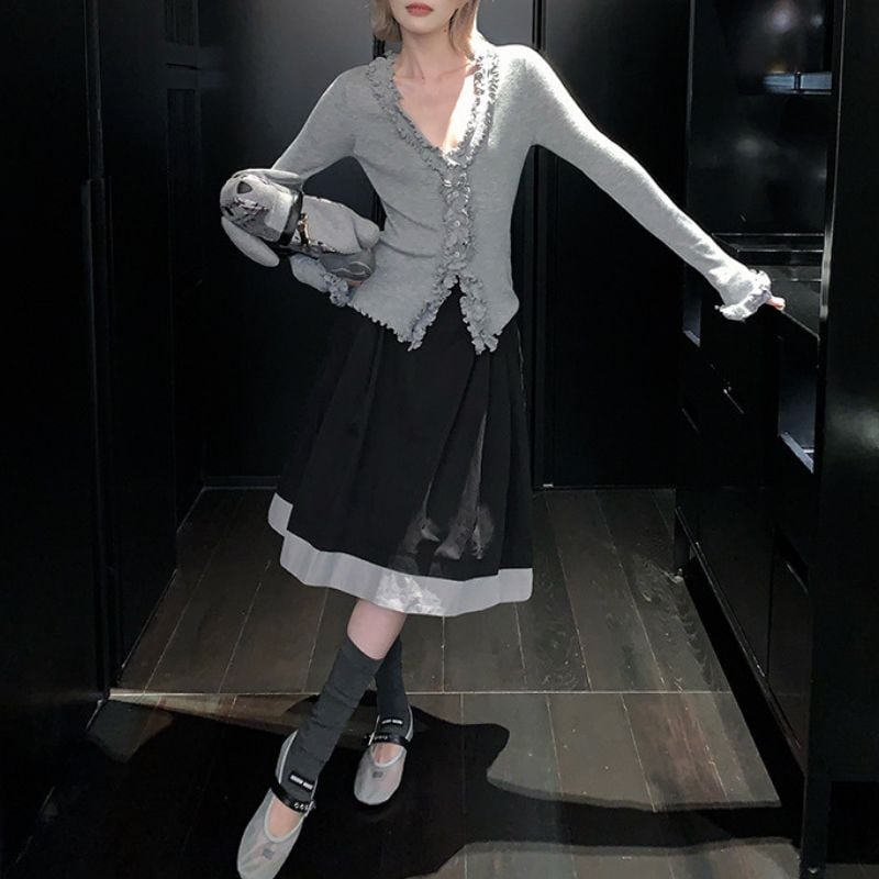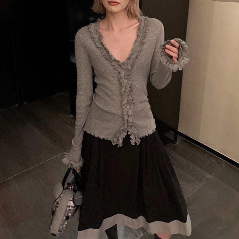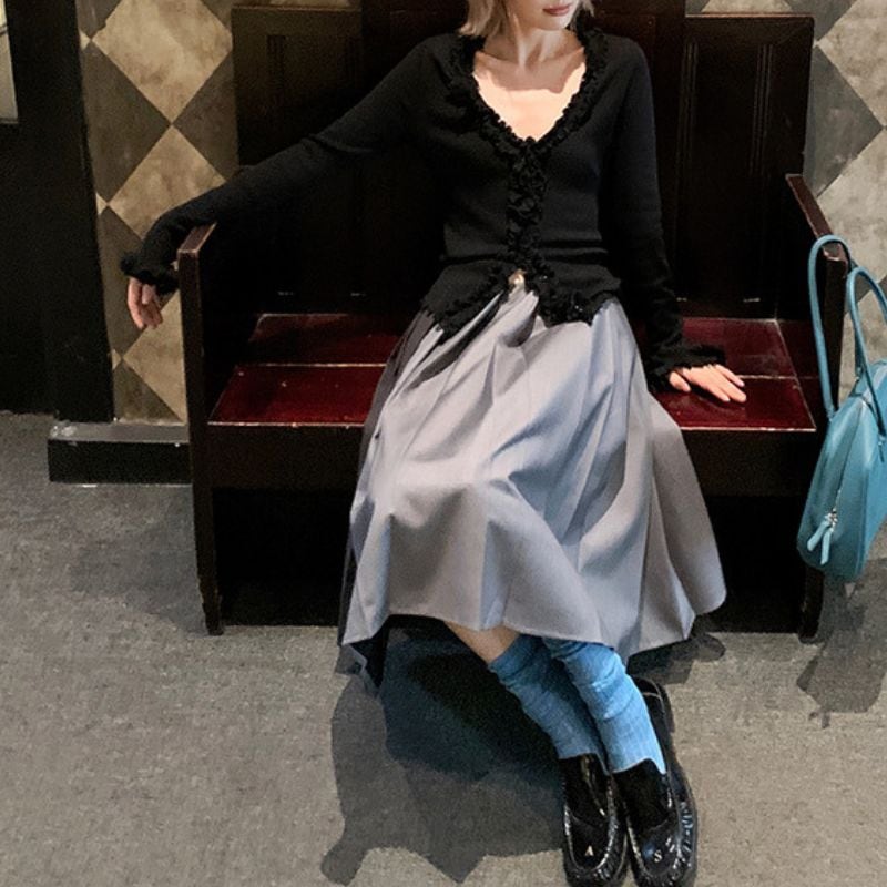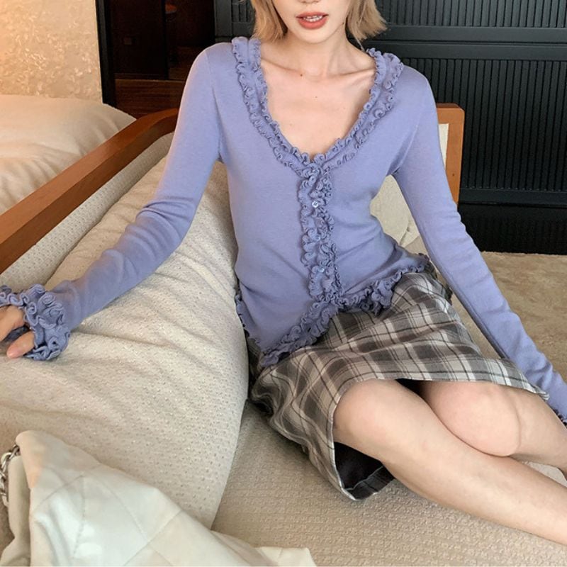 Layered ruffle long sleeve cardigan《5colors》 00556