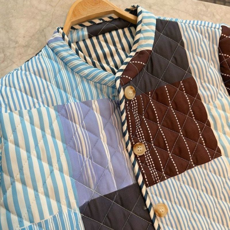 軽やかなジオメトリックパッチワークが目を惹くジャケット。