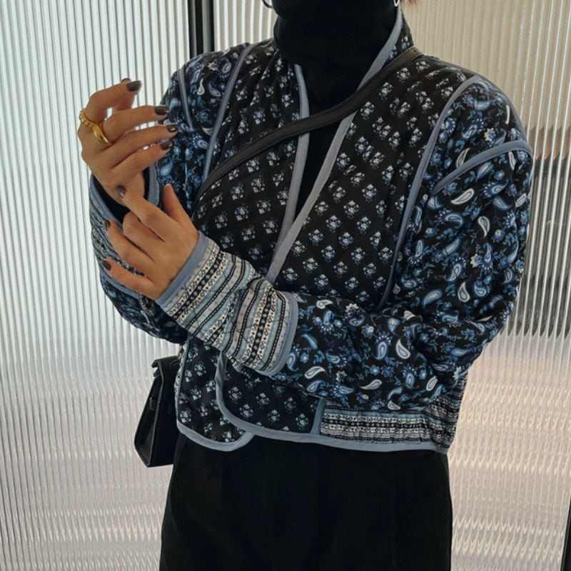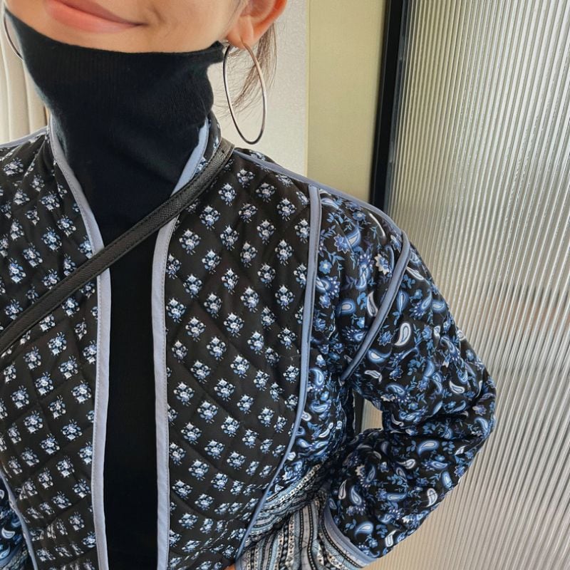 リバーシブル仕様で2通りの柄が楽しめるキルティングジャケット。