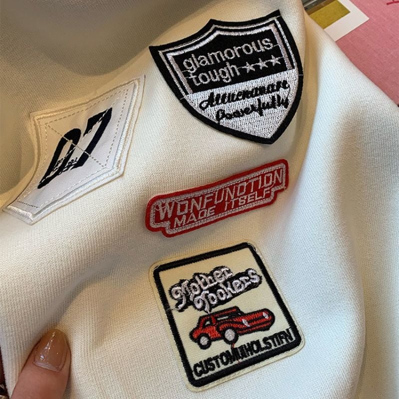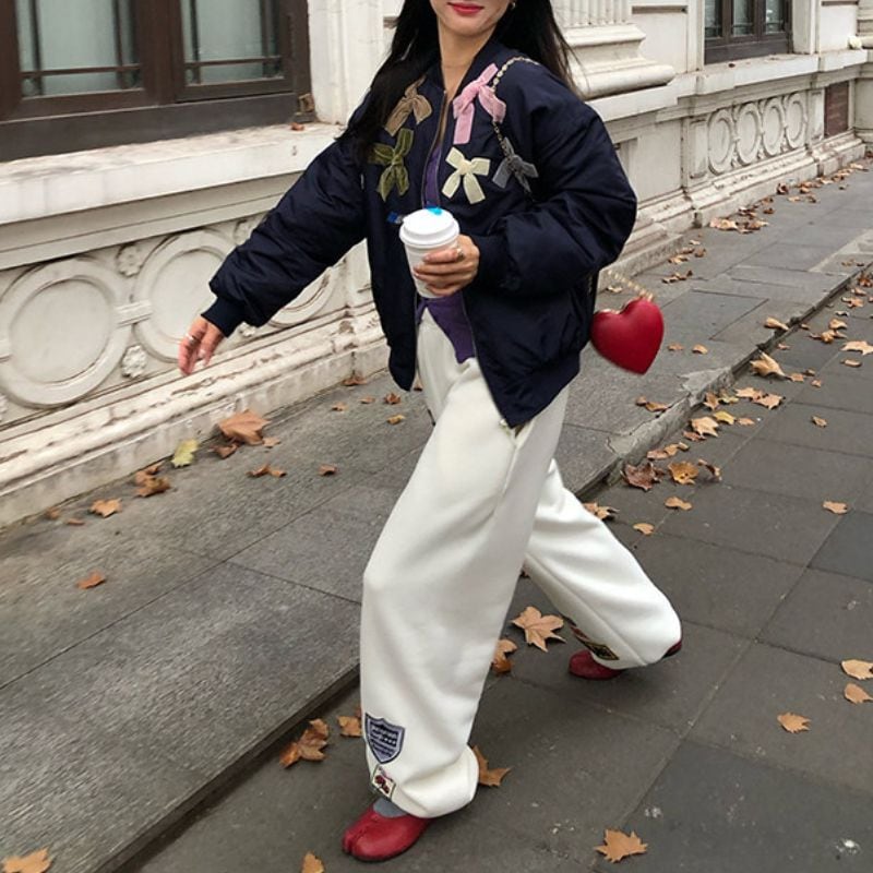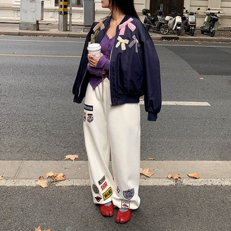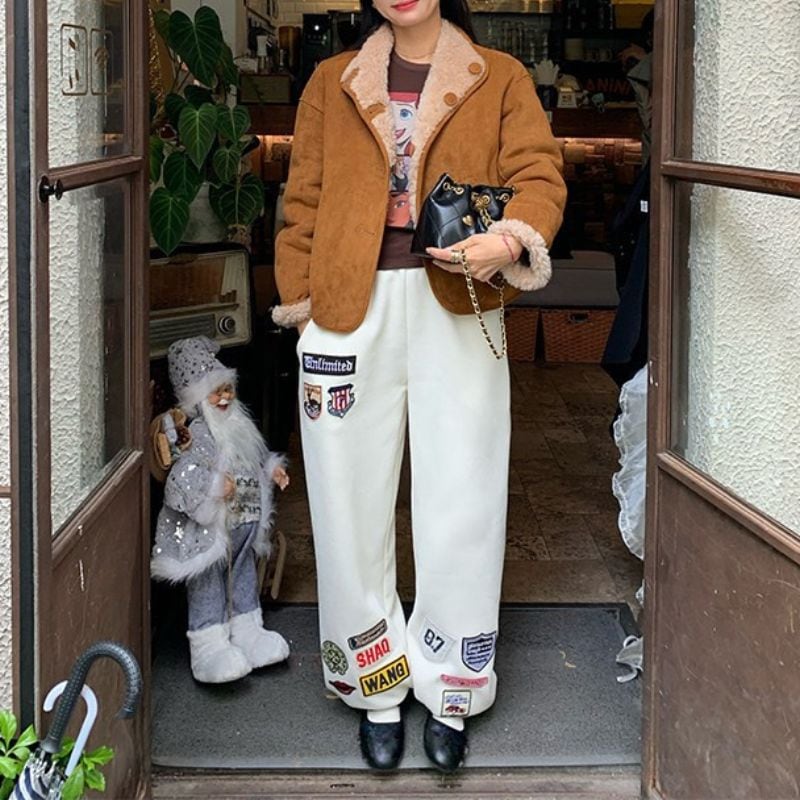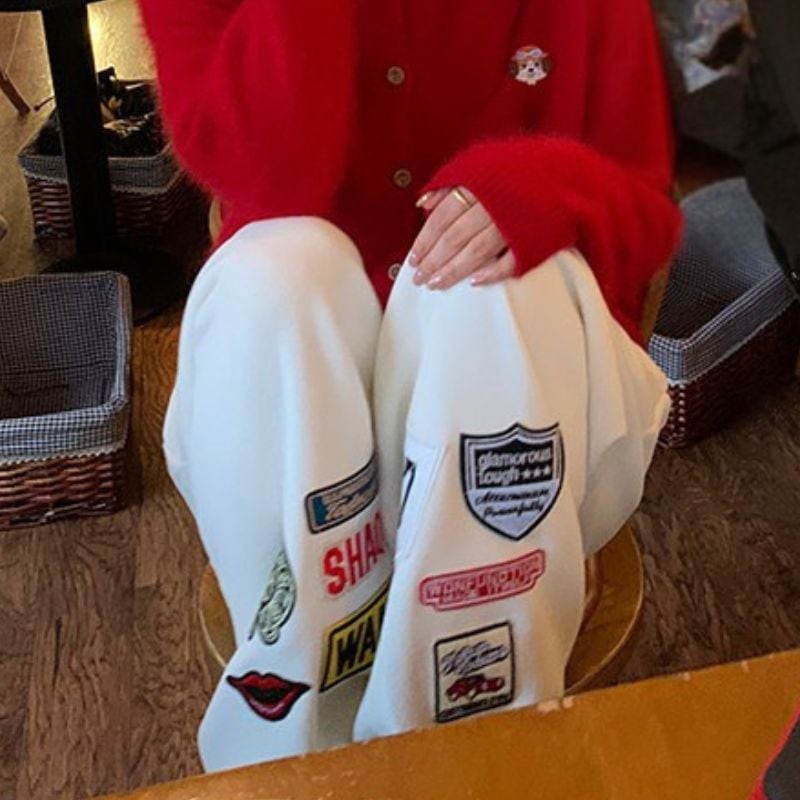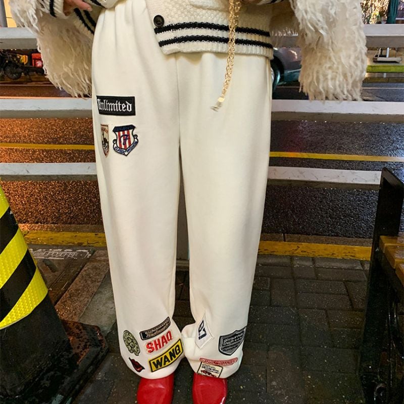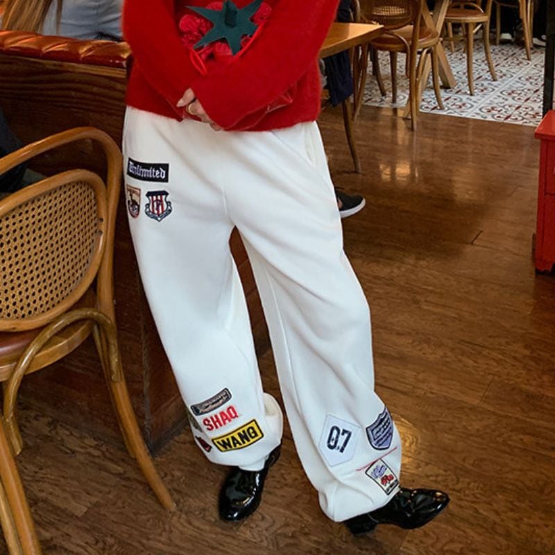 Embroidered patch wide sweatpants 00618