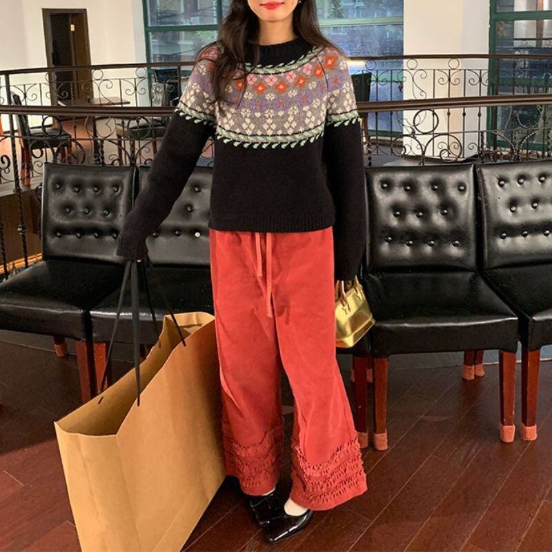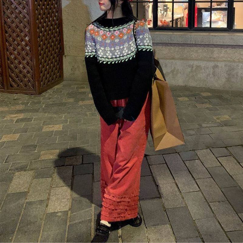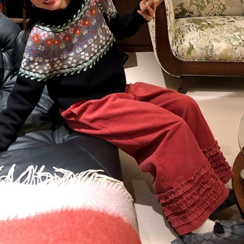 シンプルなトップス合わせでも存在感のあるスタイルに◎