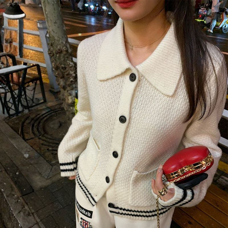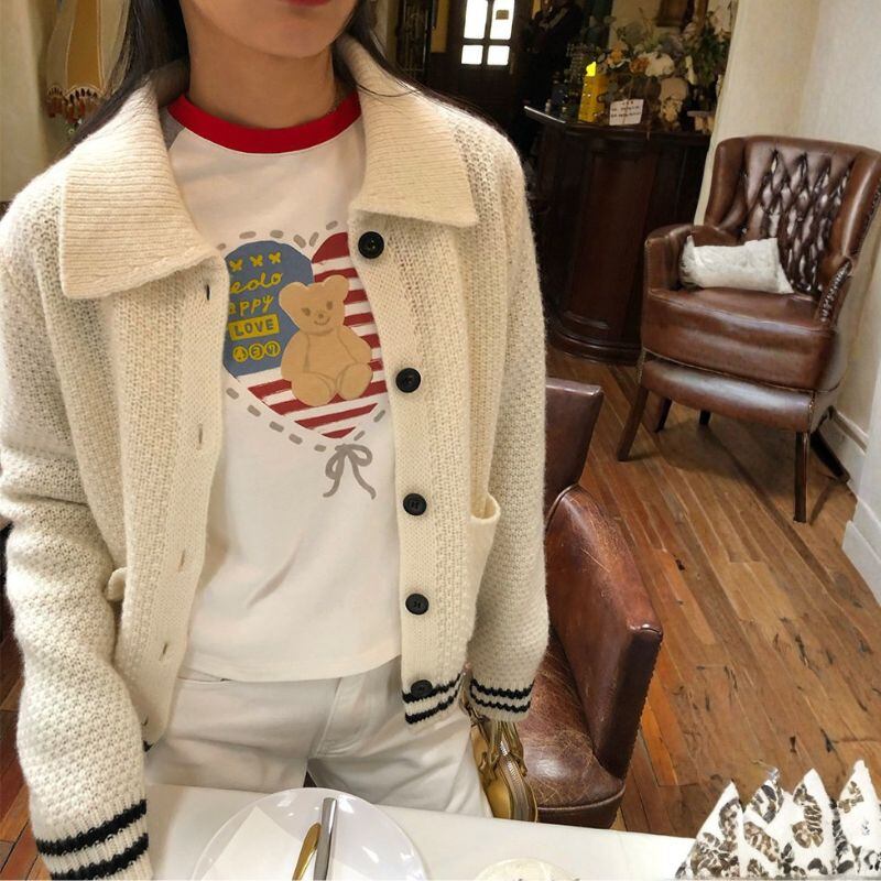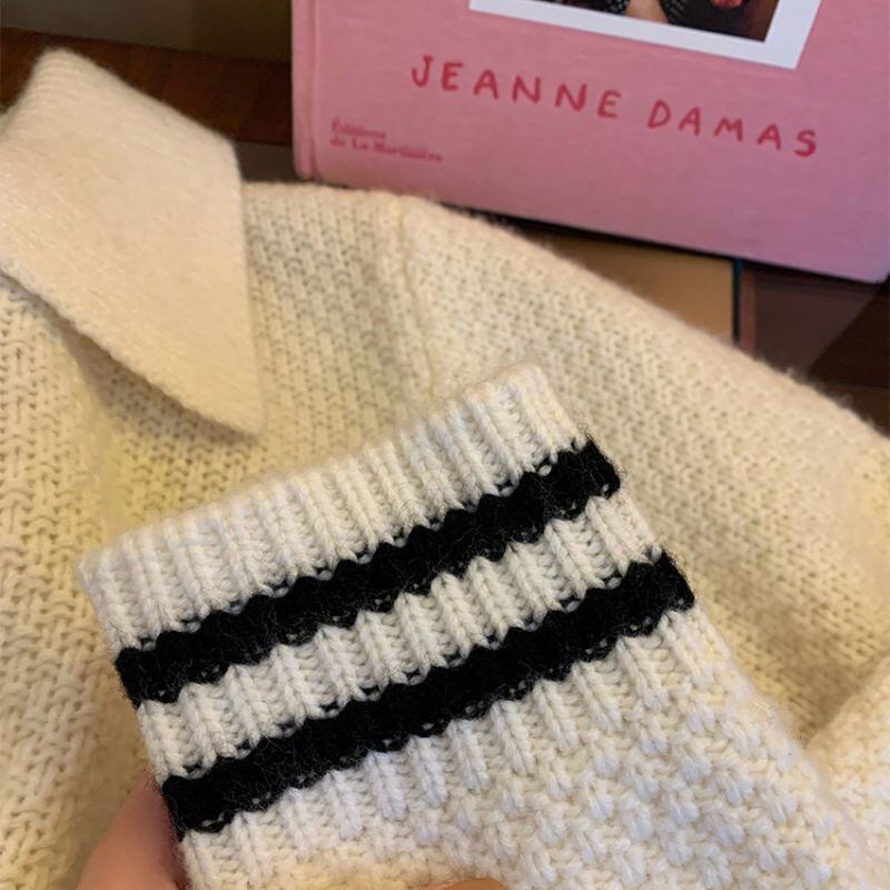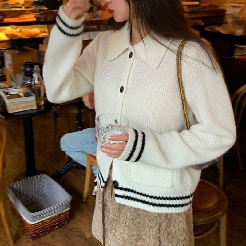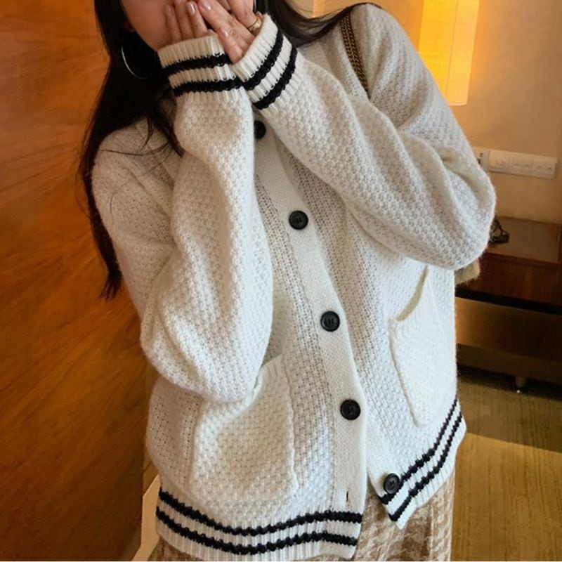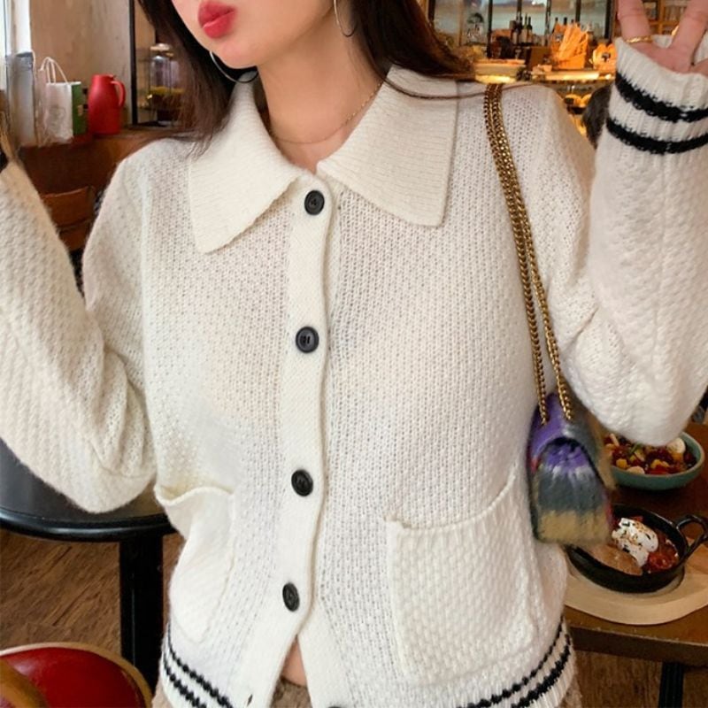 Contrast line collar knit cardigan 00632