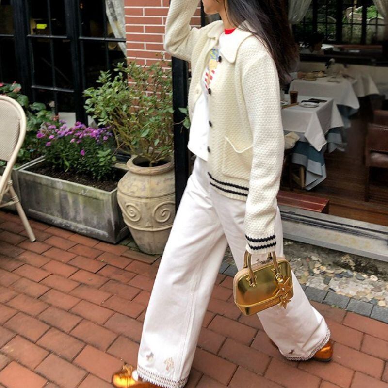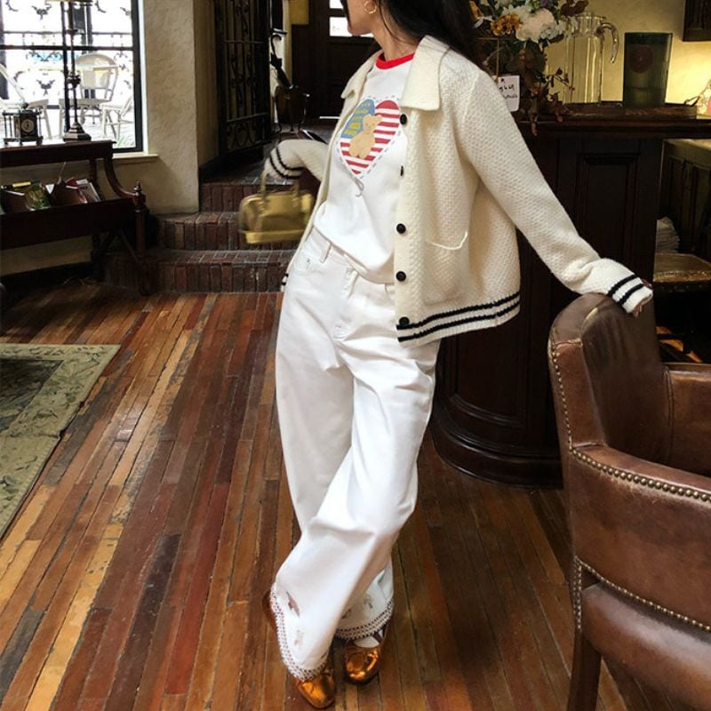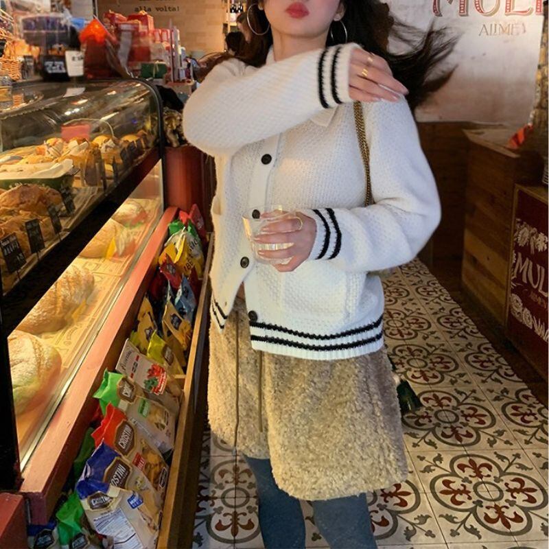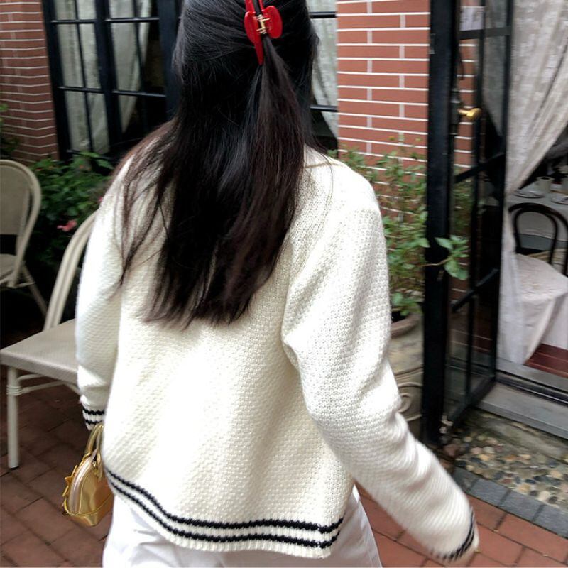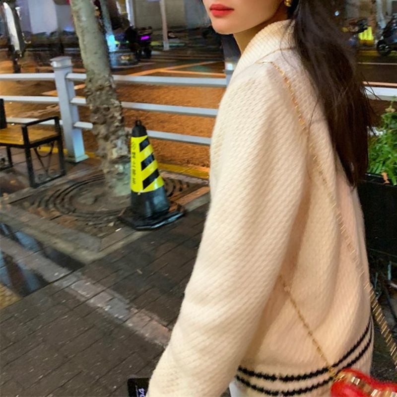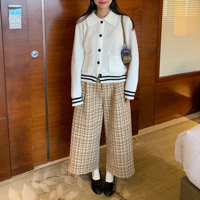 Contrast line collar knit cardigan 00632