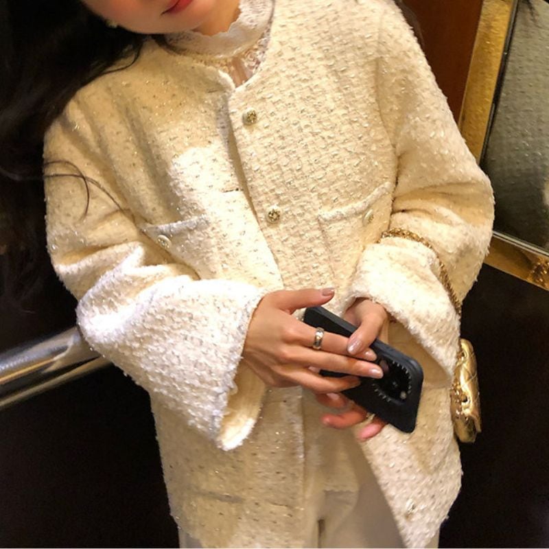 Pearl button no-collar jacket 00633