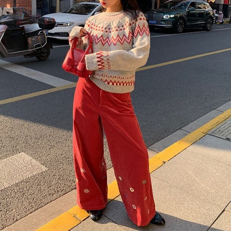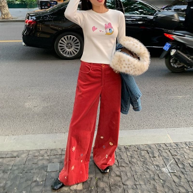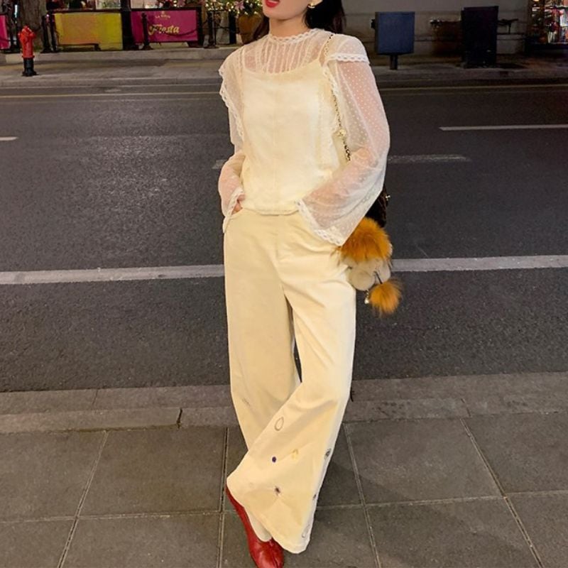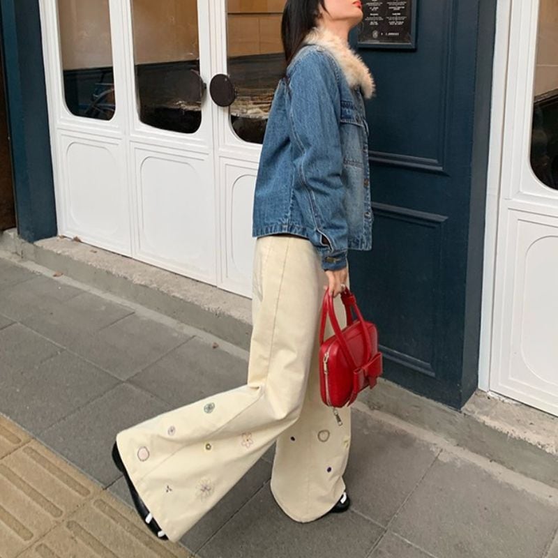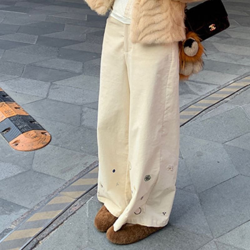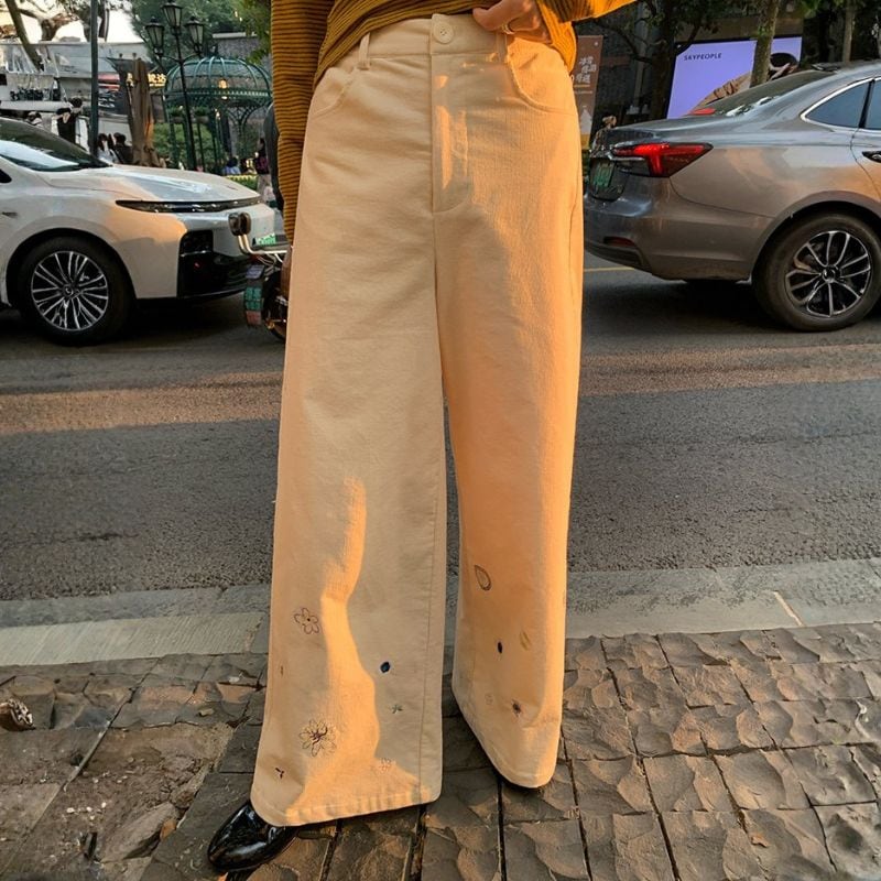 Floral embroidered wide leg pants《2colors》 00640