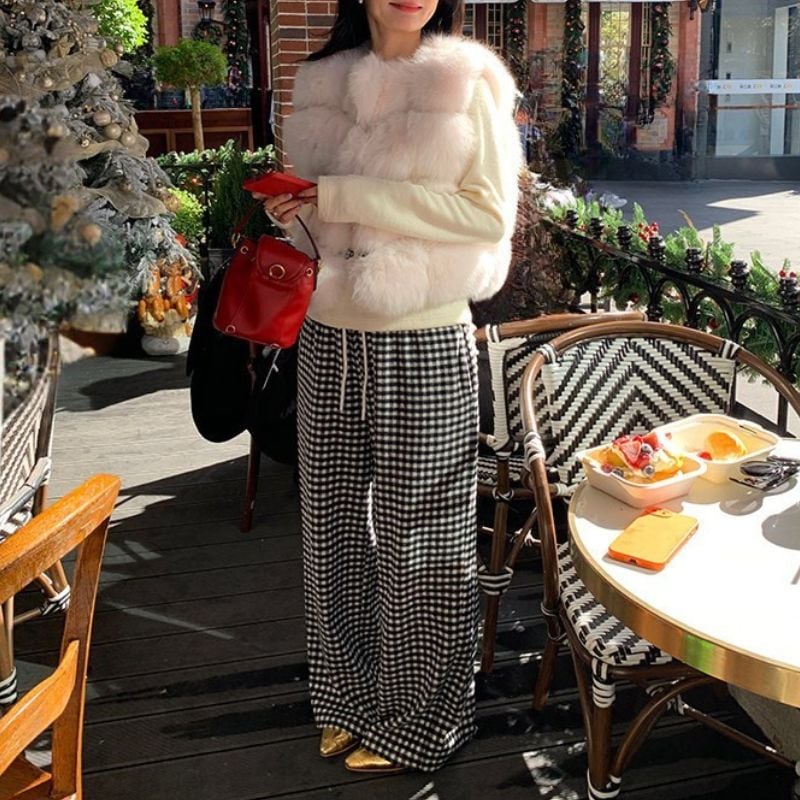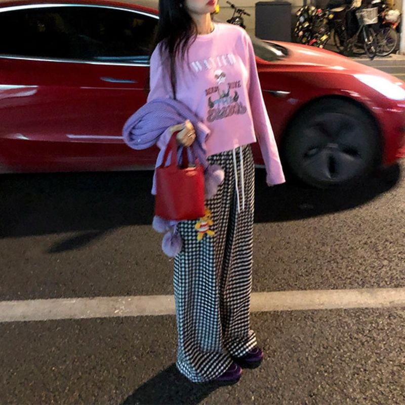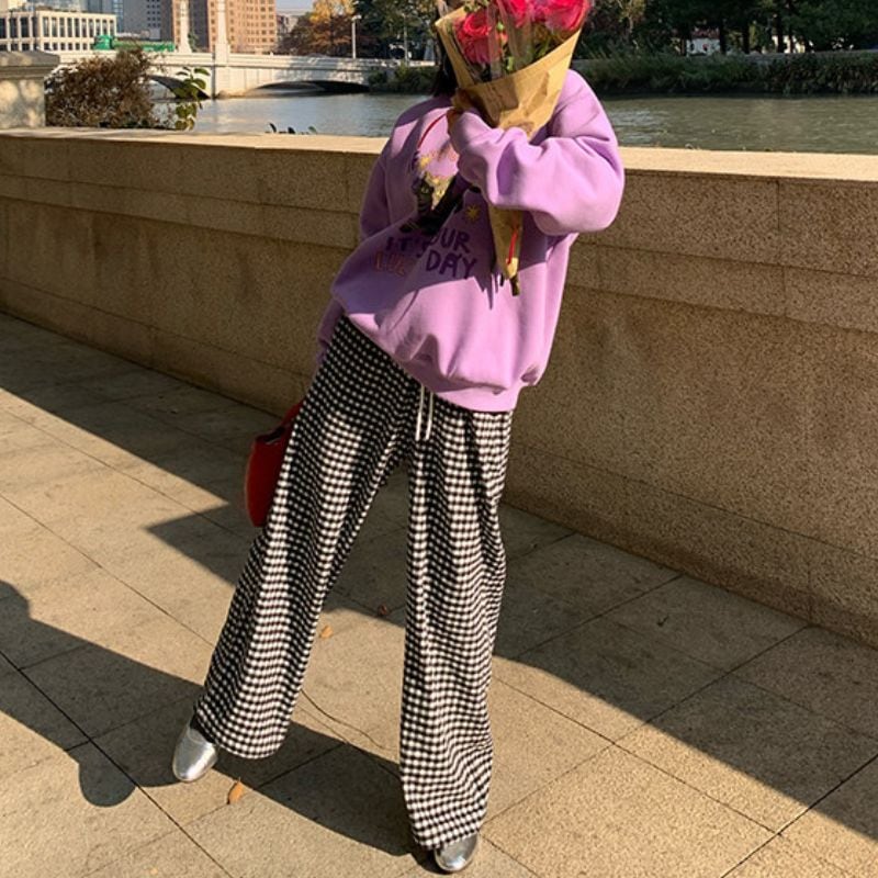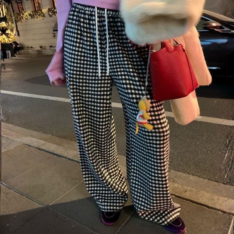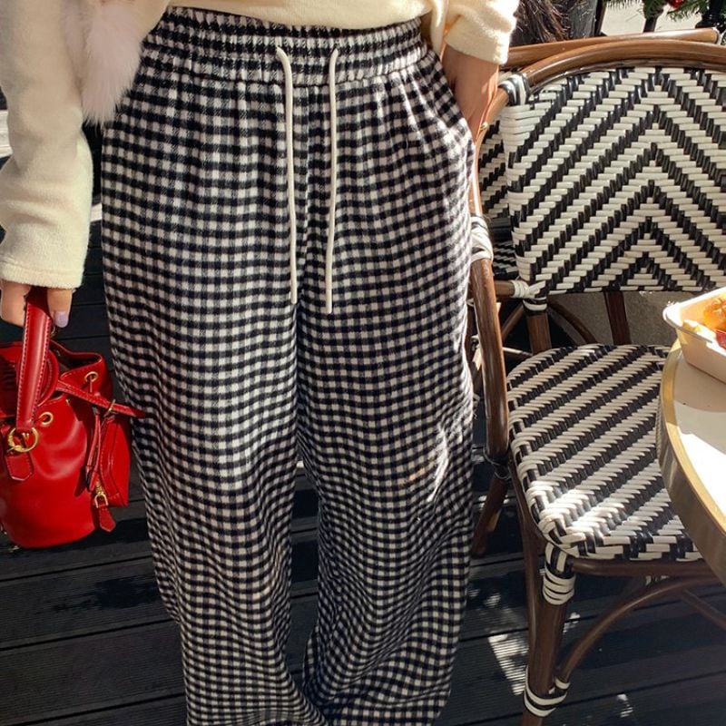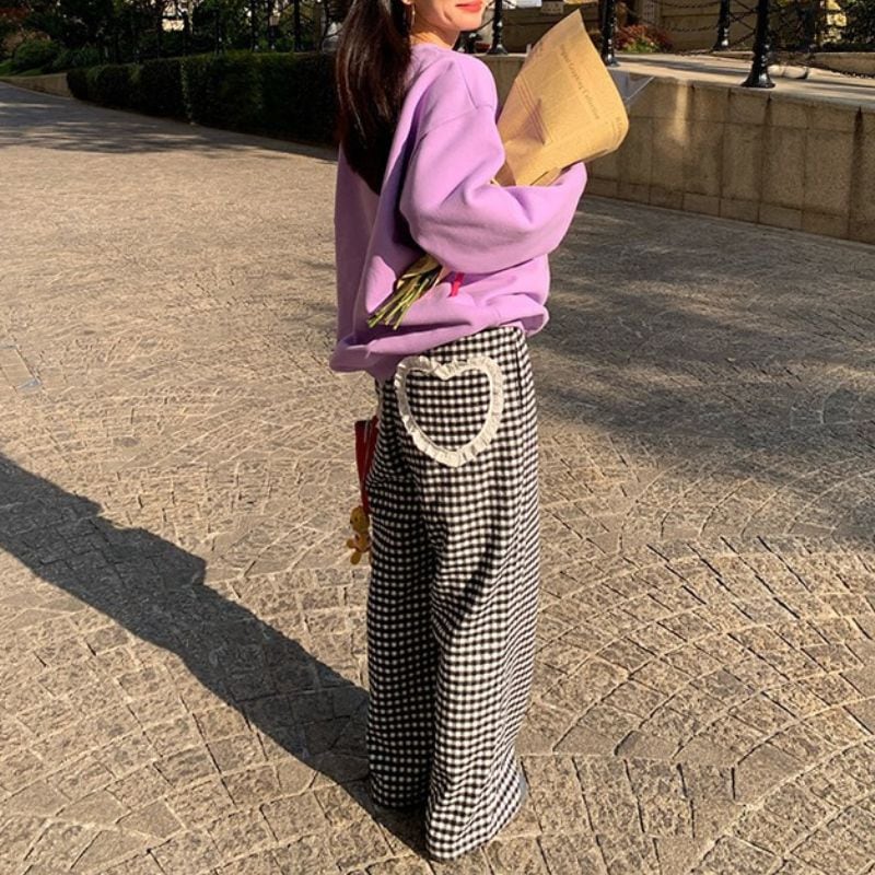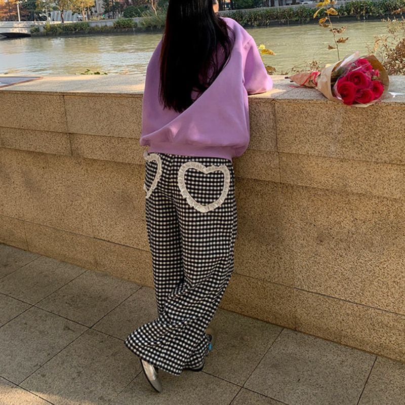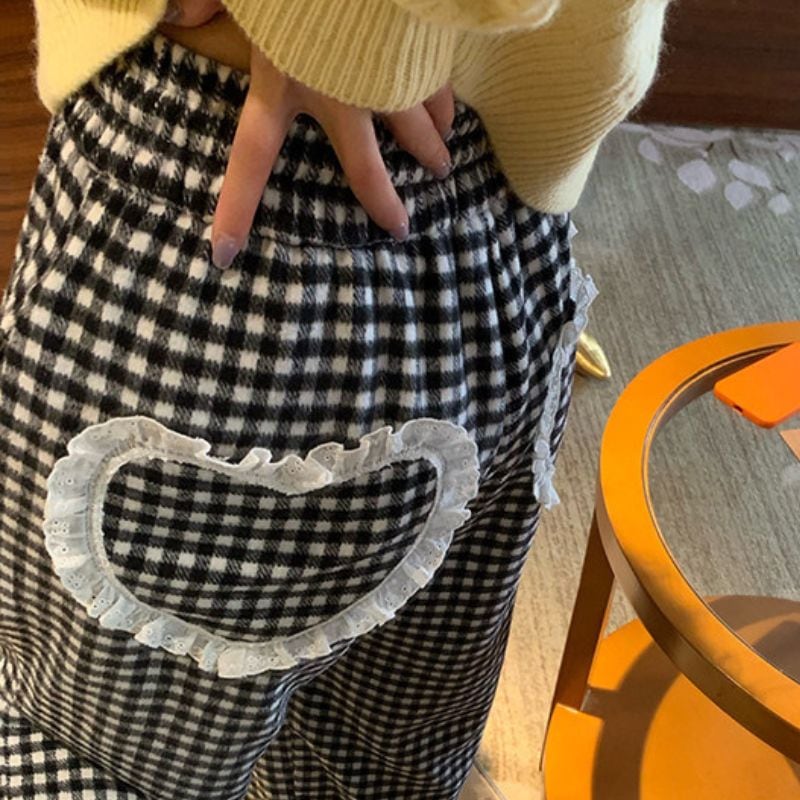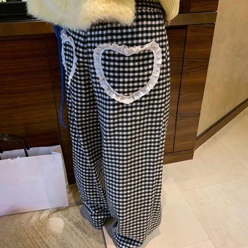 Heart pocket wide check pants 00648