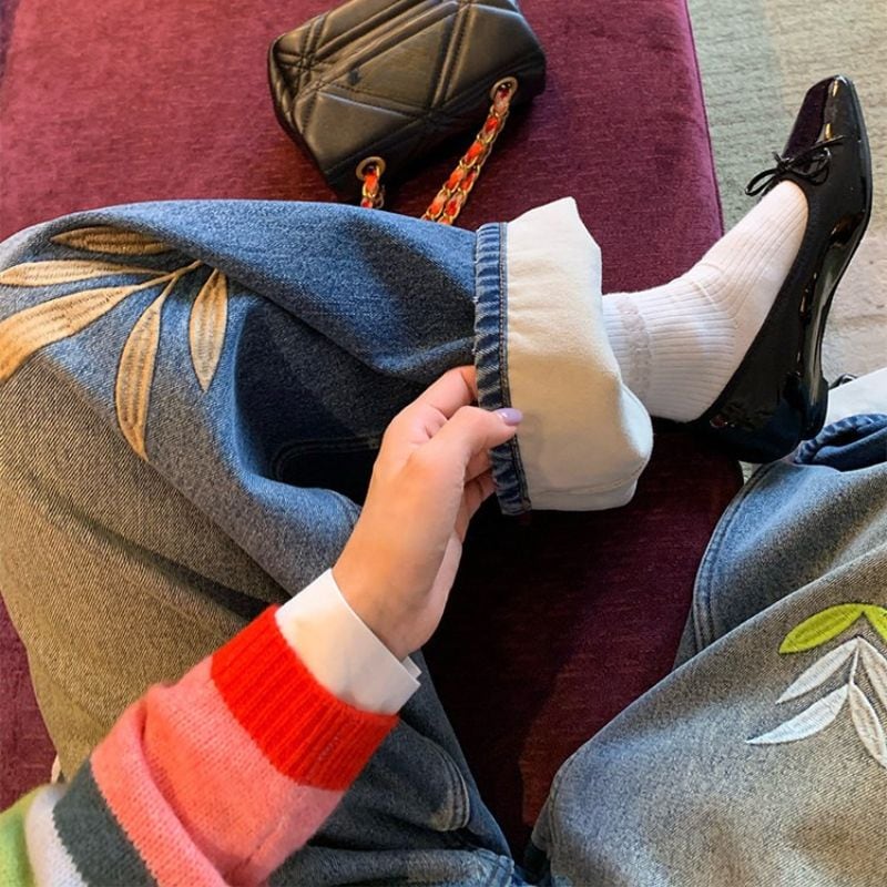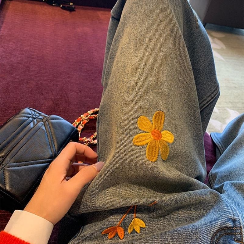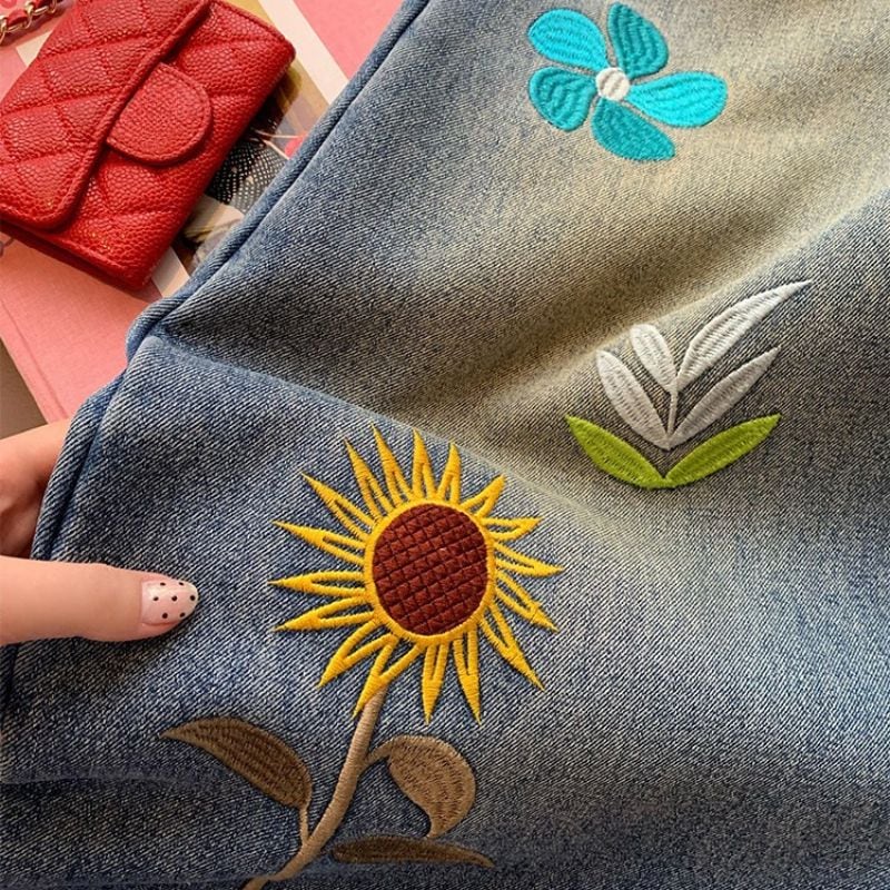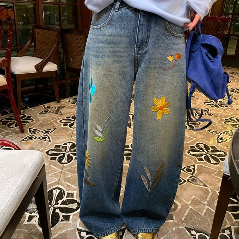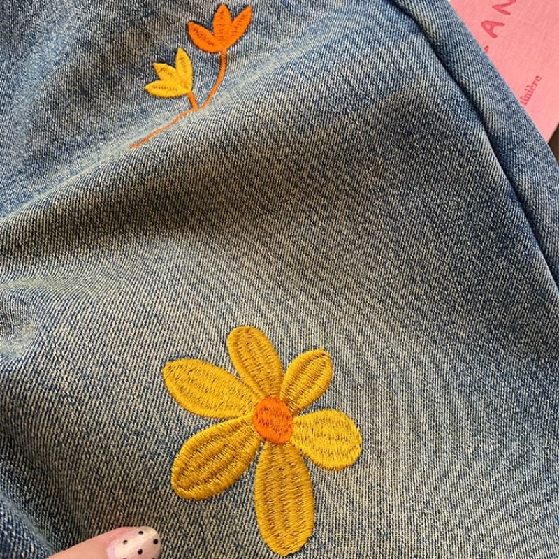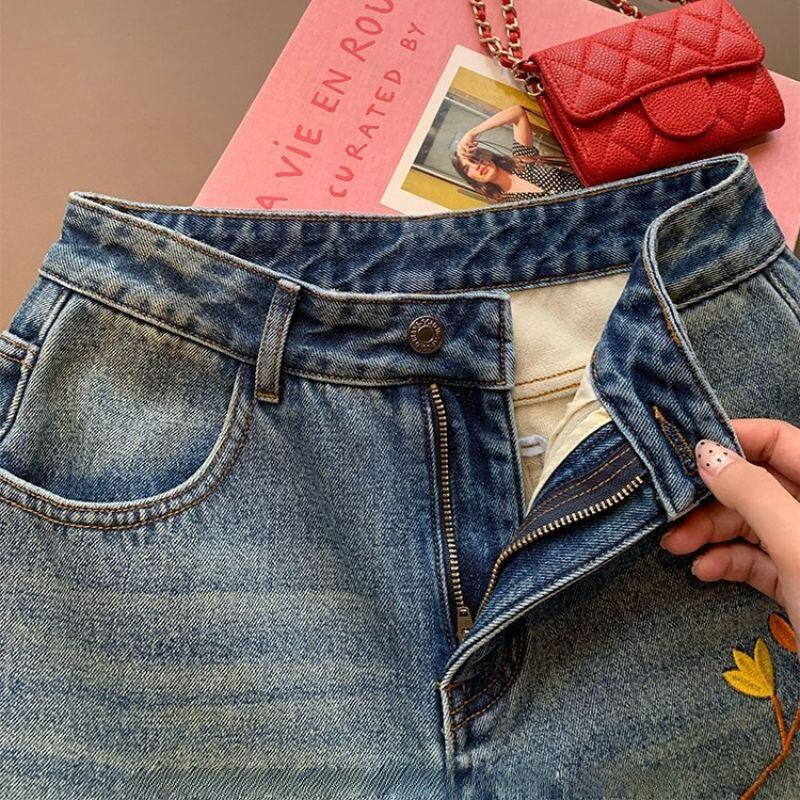 Embroidered curve denim pants 00649