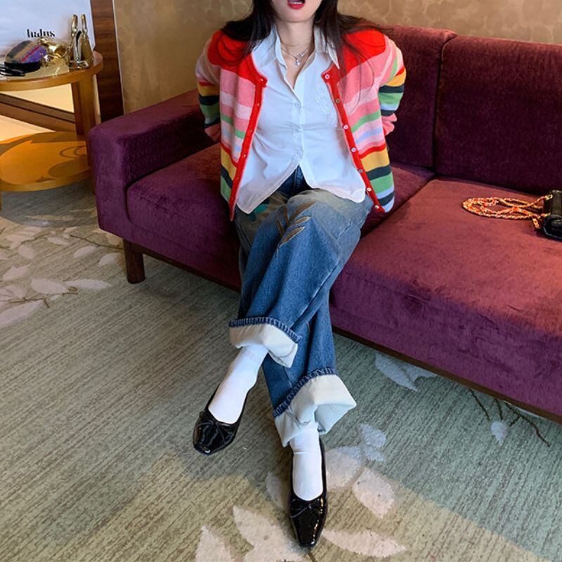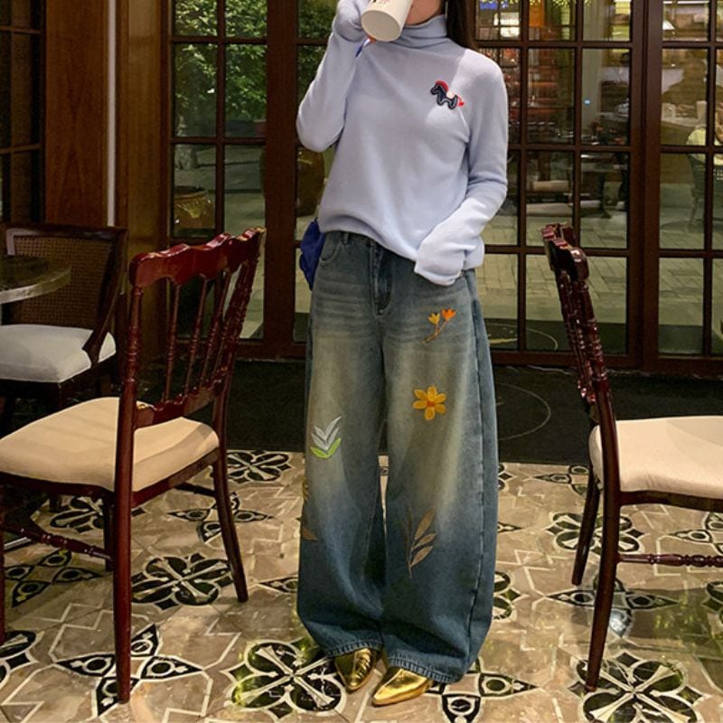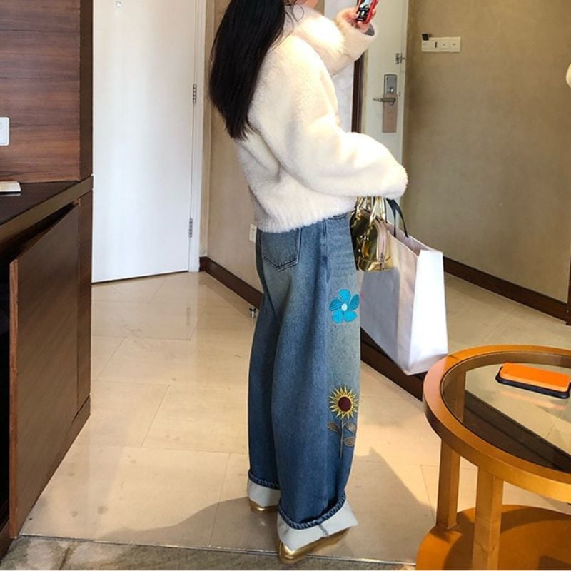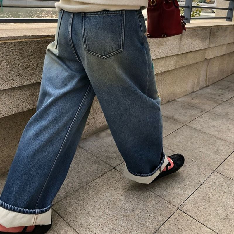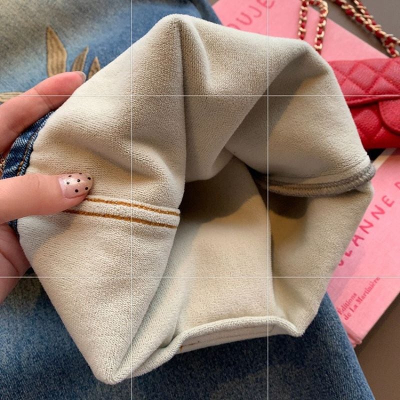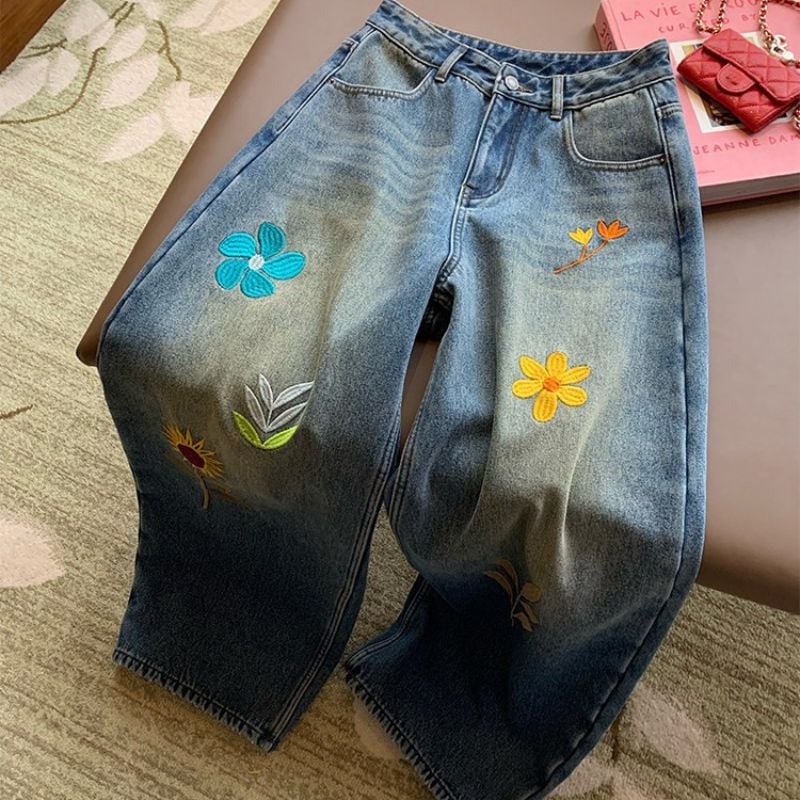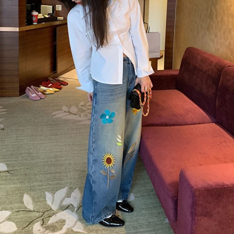 Embroidered curve denim pants 00649