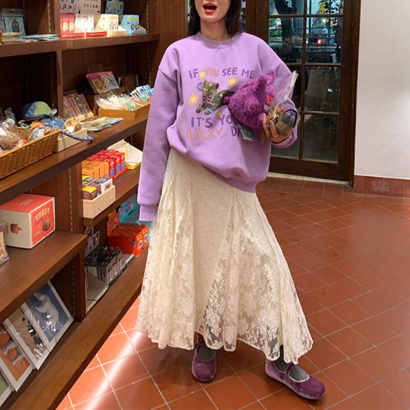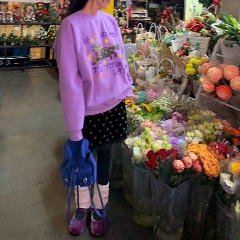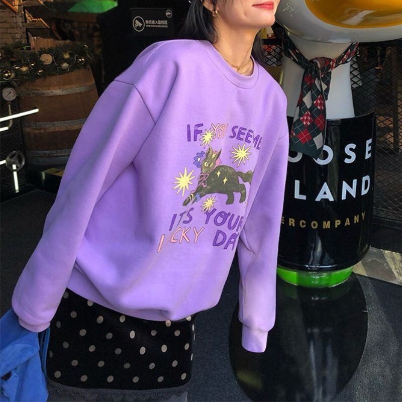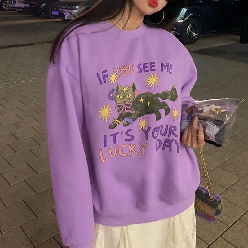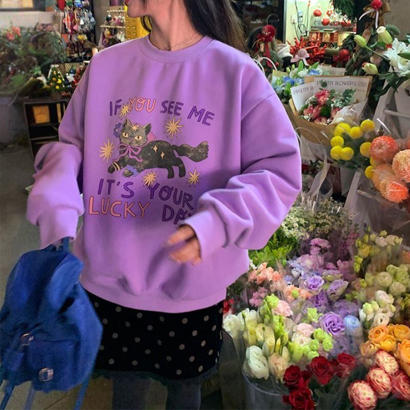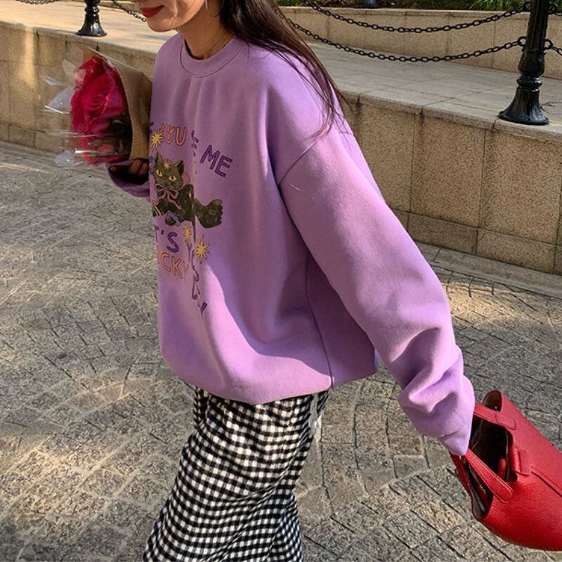 Cat print pullover sweatshirt 00654