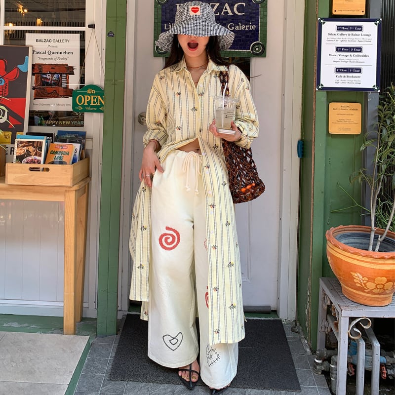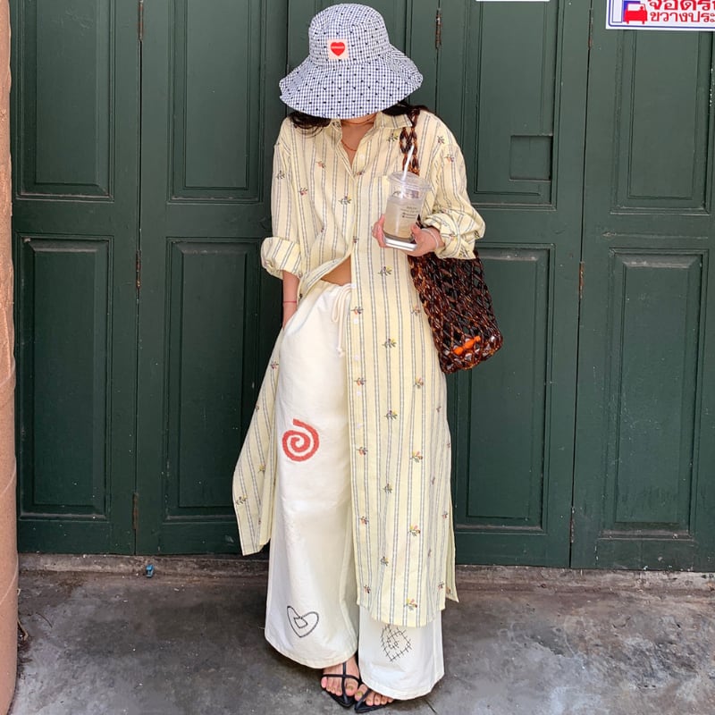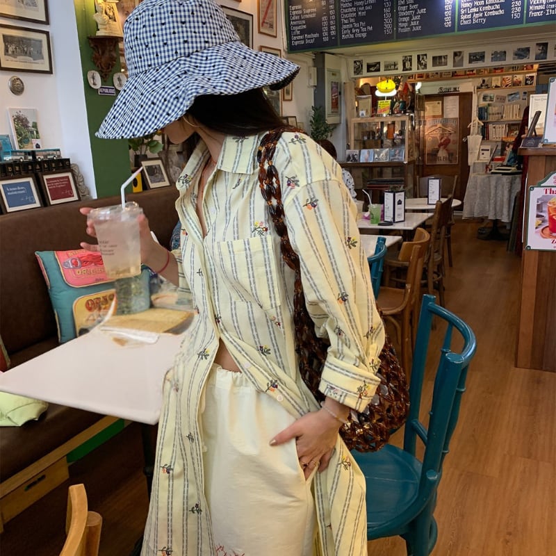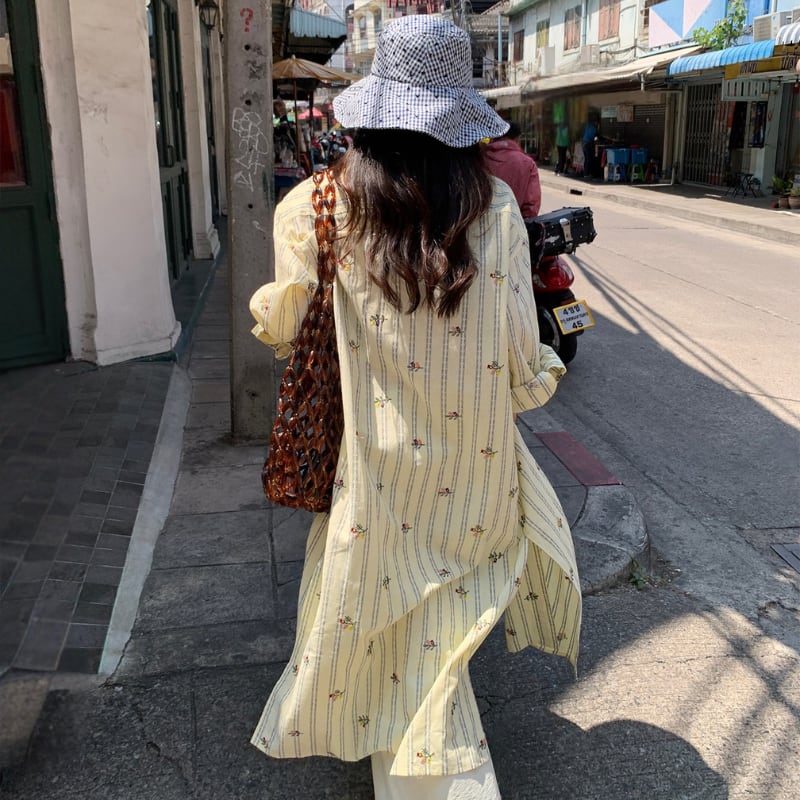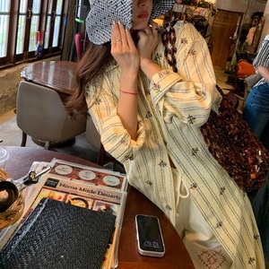 Flower stripe long shirt 00660