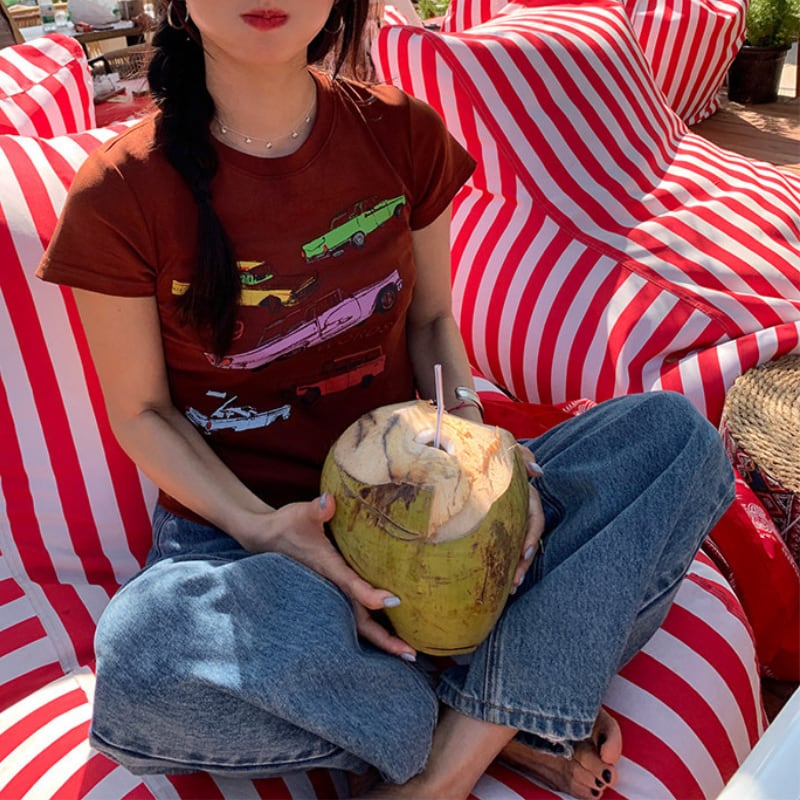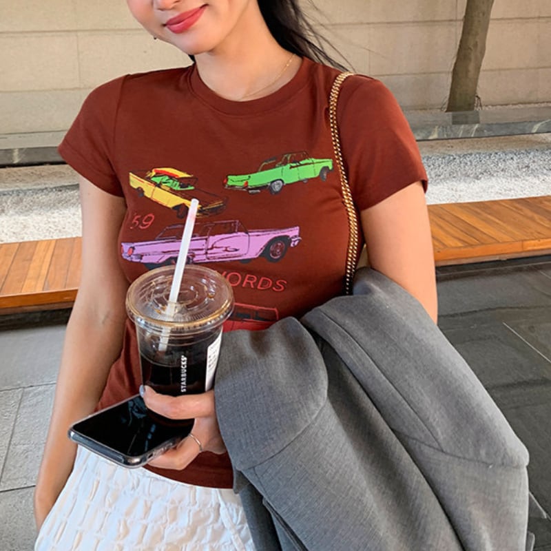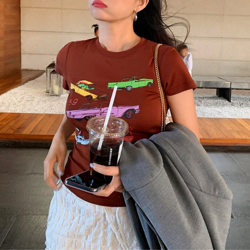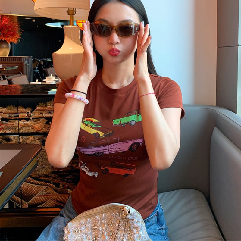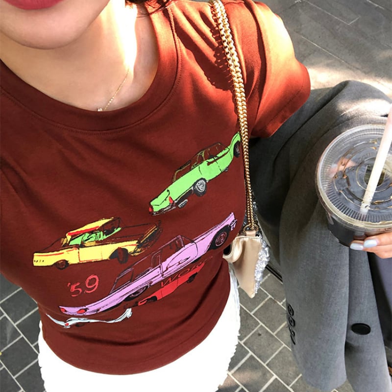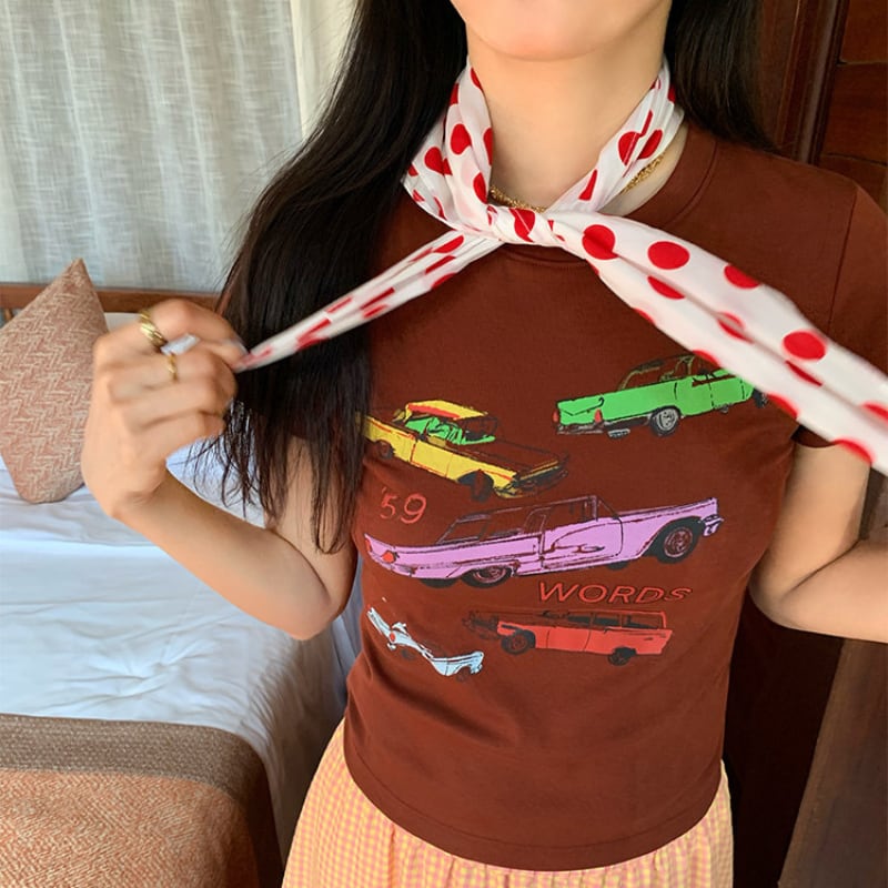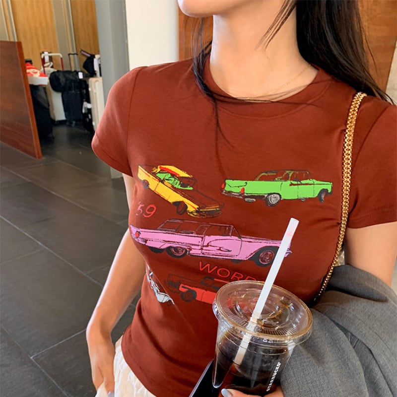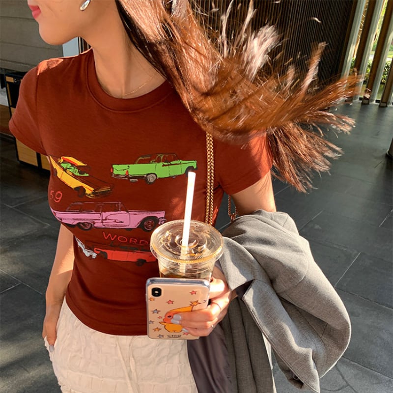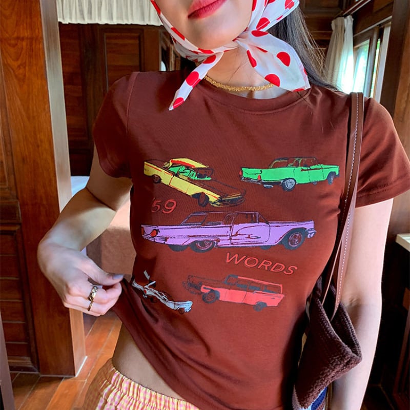 Retro car print t-shirt 00661