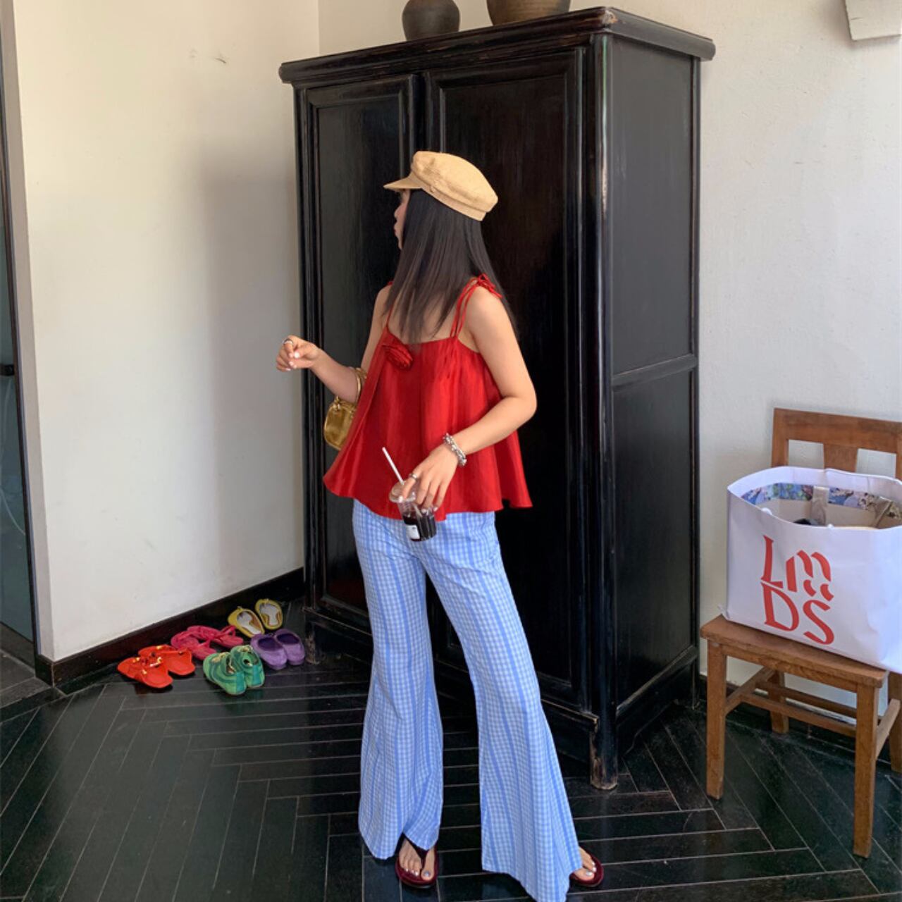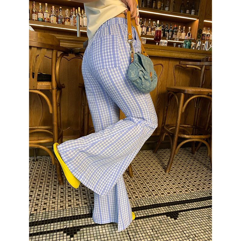 甘すぎないギンガムチェックが魅力のフレアパンツ。