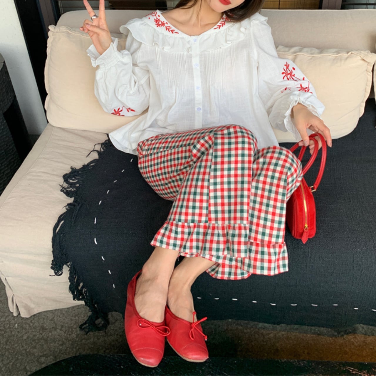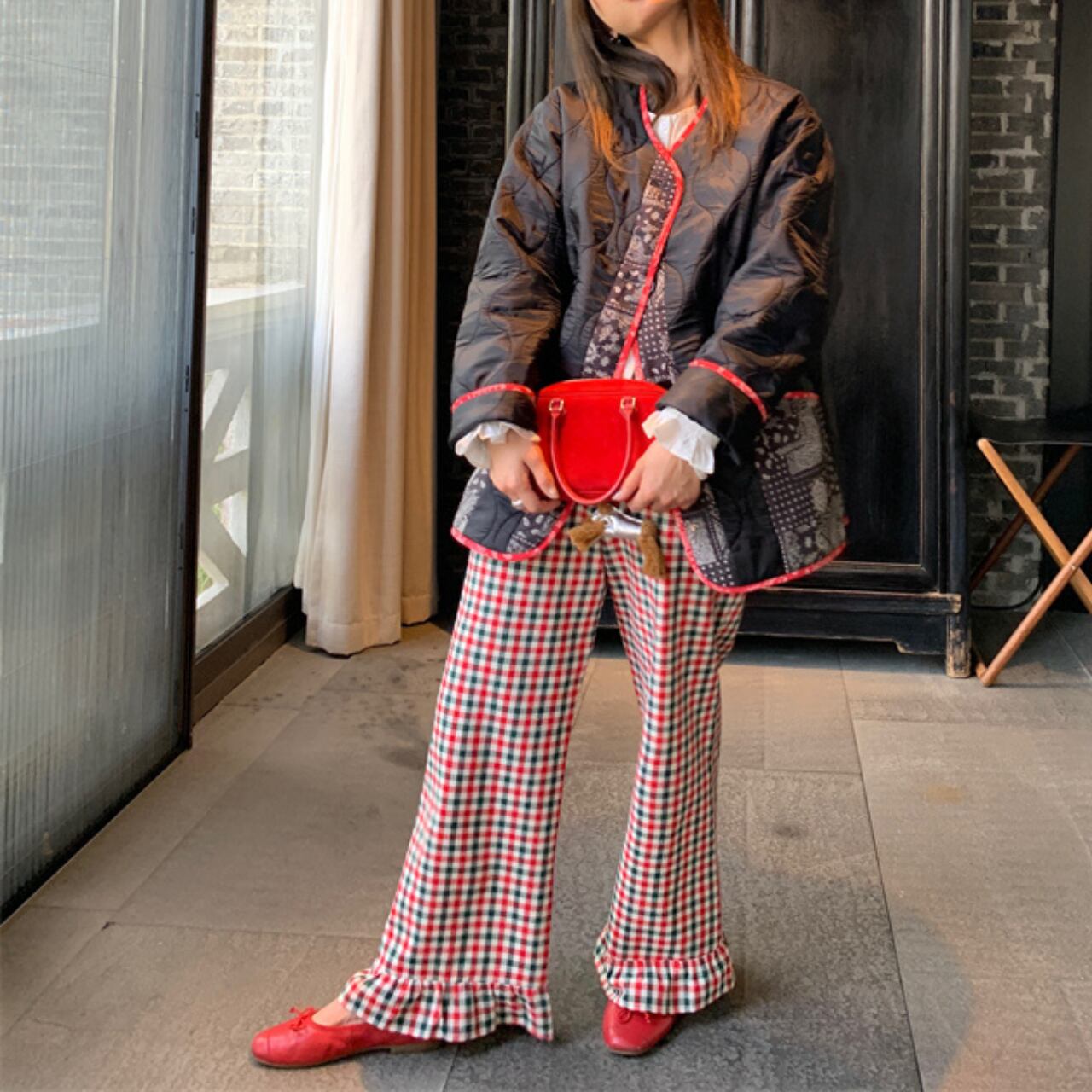 チェック柄が目を惹く、着回し力抜群のワイドパンツ。